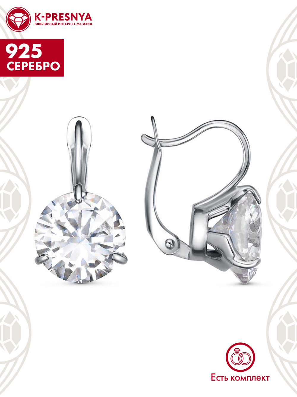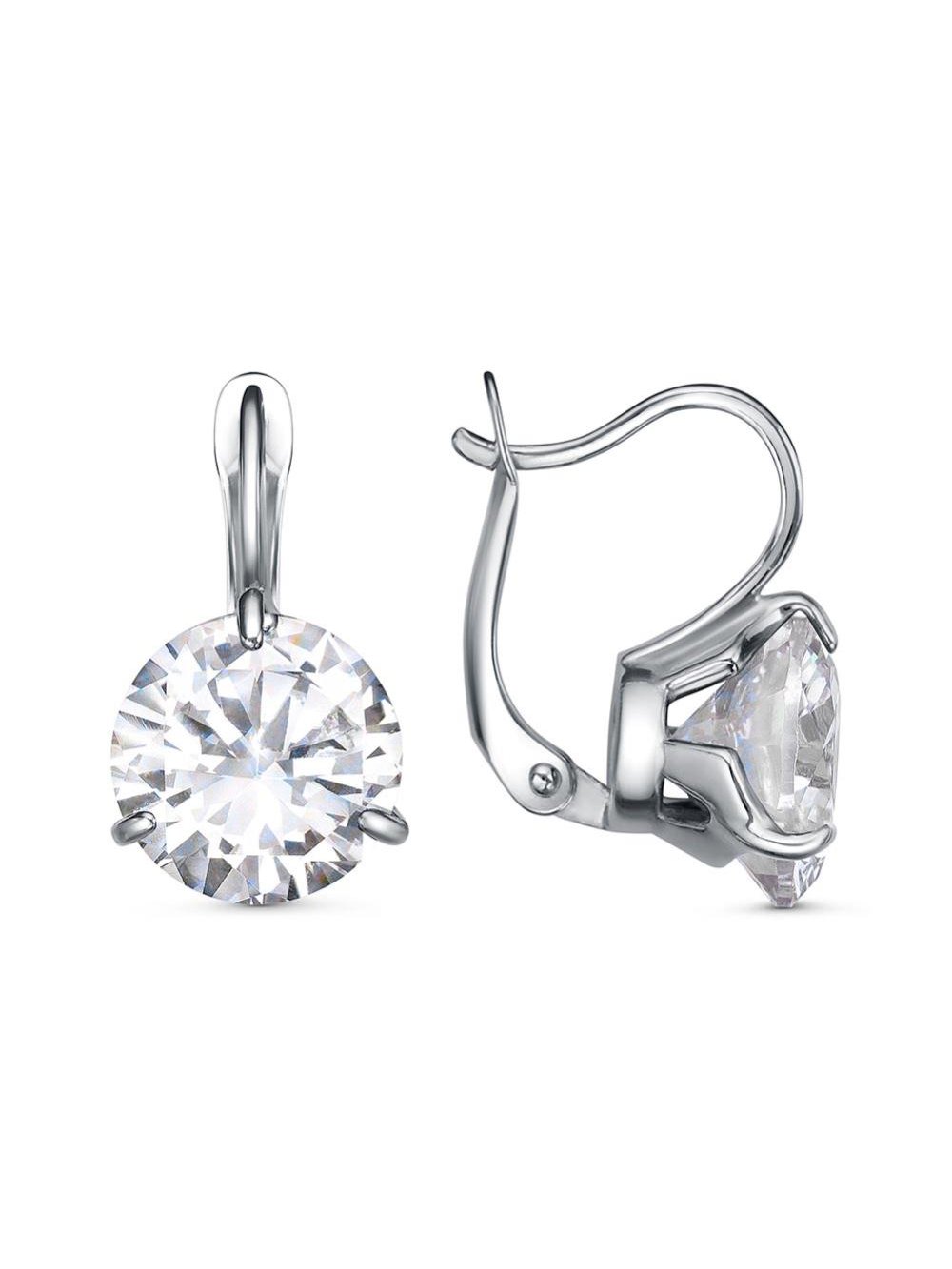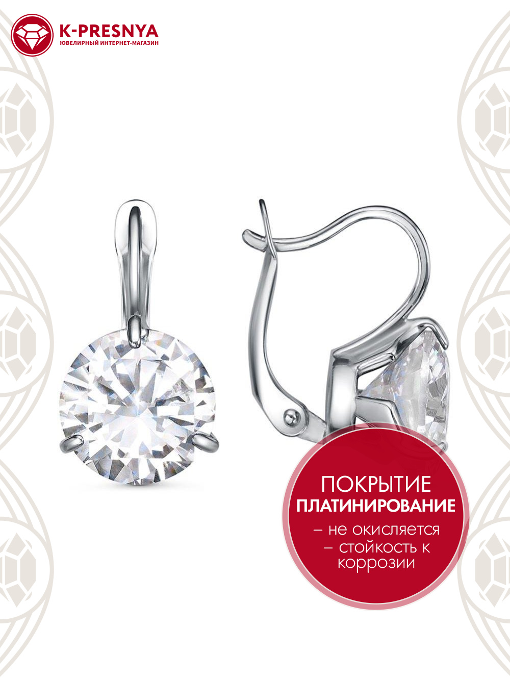 Серьги серебро 925 пробы, покрытие - платинирование, вставка - фианит (недрагоценный камень)