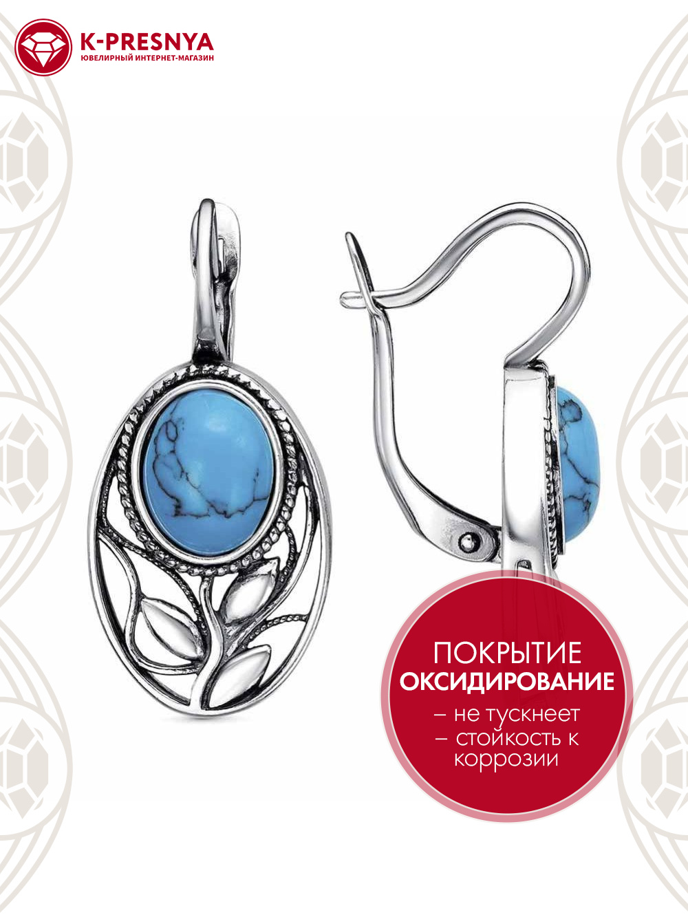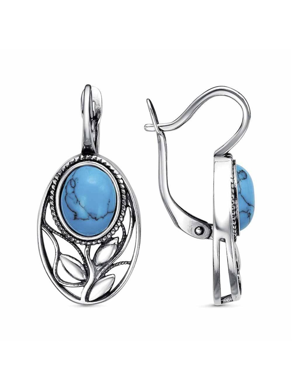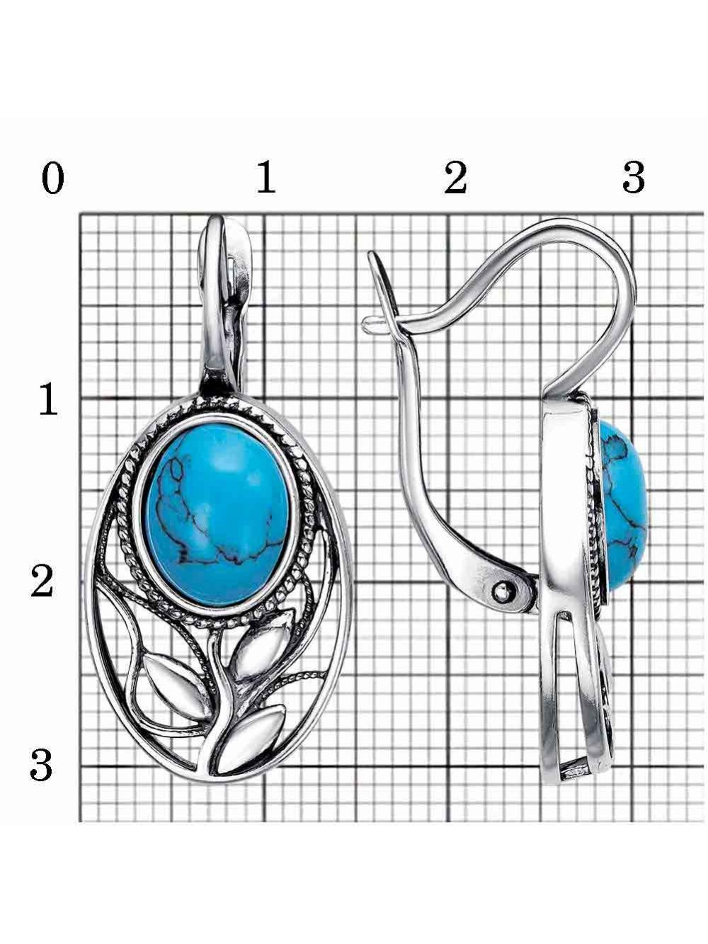 Серьги серебро 925 пробы, покрытие - оксидирование, вставка - искусственная бирюза