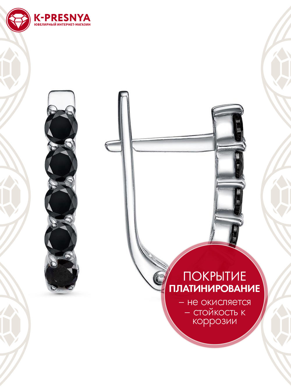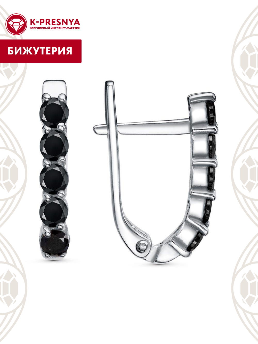 Серьги бижутерия, покрытие - платинирование, вставка - фианит (недрагоценный камень)
