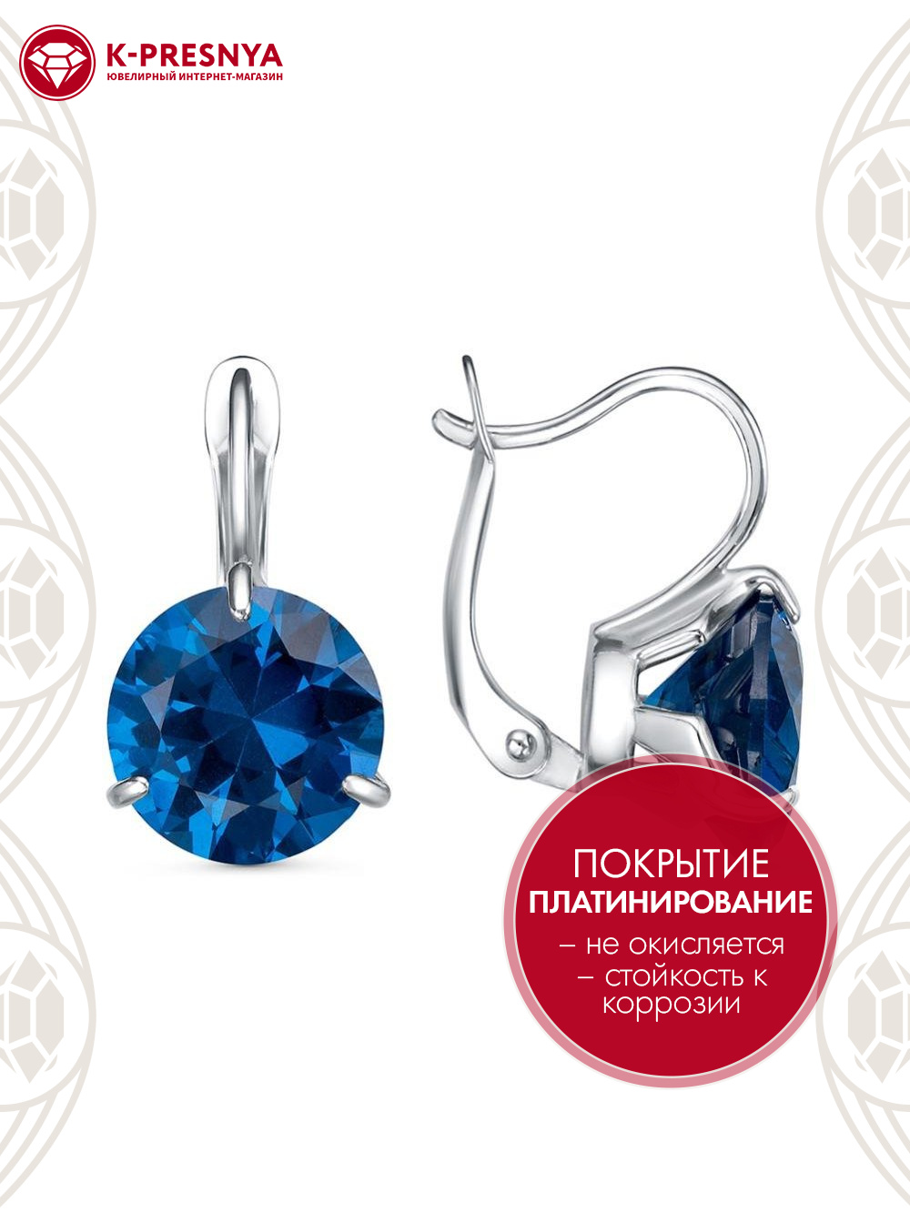 Серьги бижутерия, покрытие - платинирование, вставка - искусственная шпинель