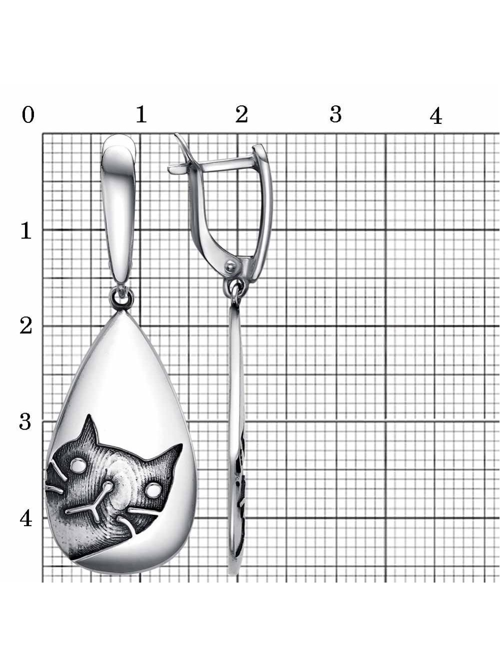 Серьги бижутерия, покрытие - серебрение с оксидированием, без вставок