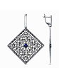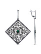 Серьги бижутерия, покрытие - серебрение с оксидированием, вставка - синтетический корунд