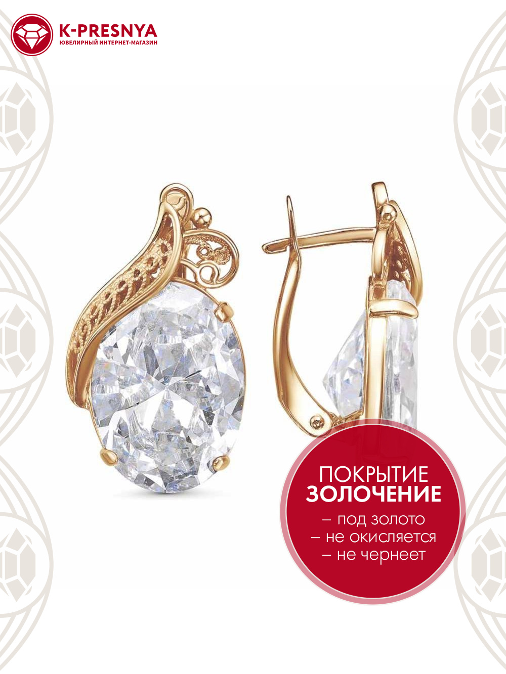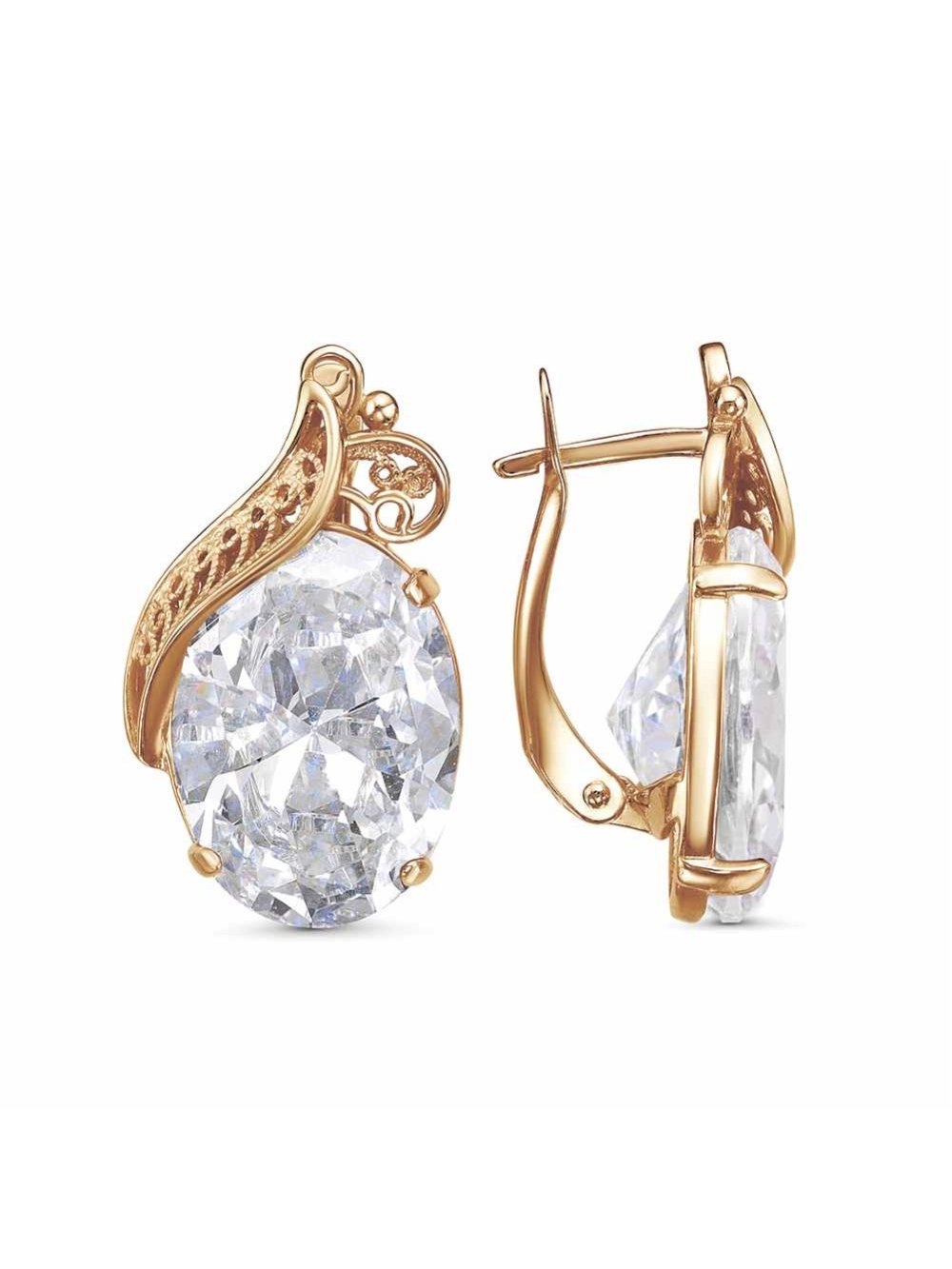 Серьги бижутерия, покрытие - золочение, вставка - фианит (недрагоценный камень)