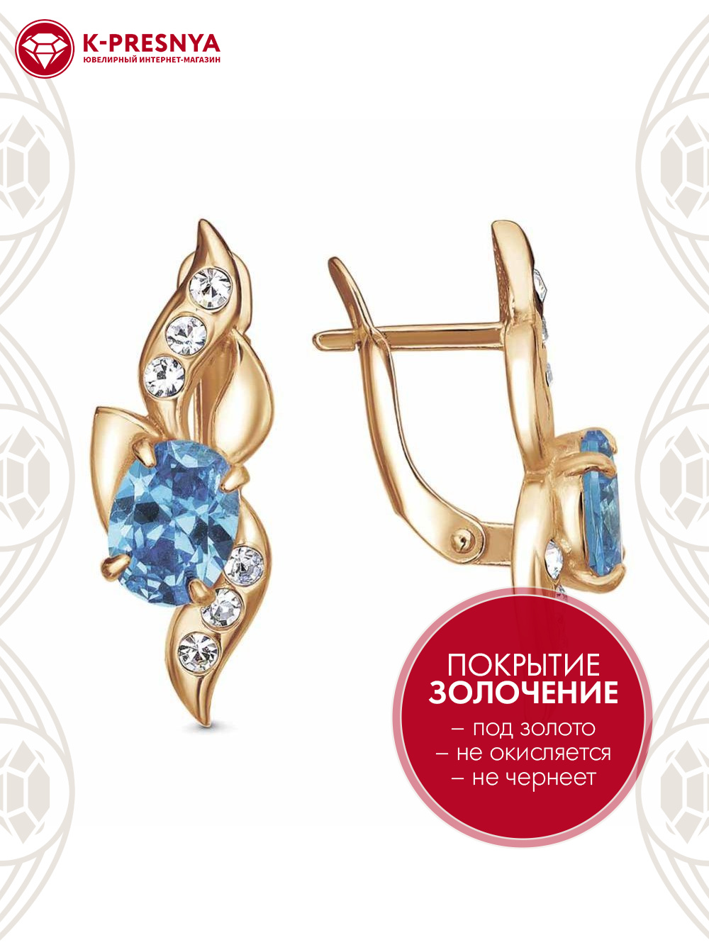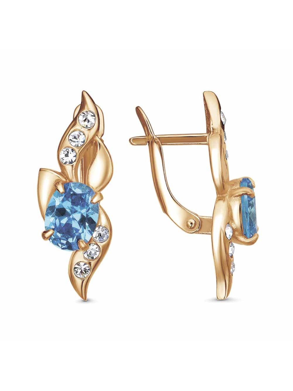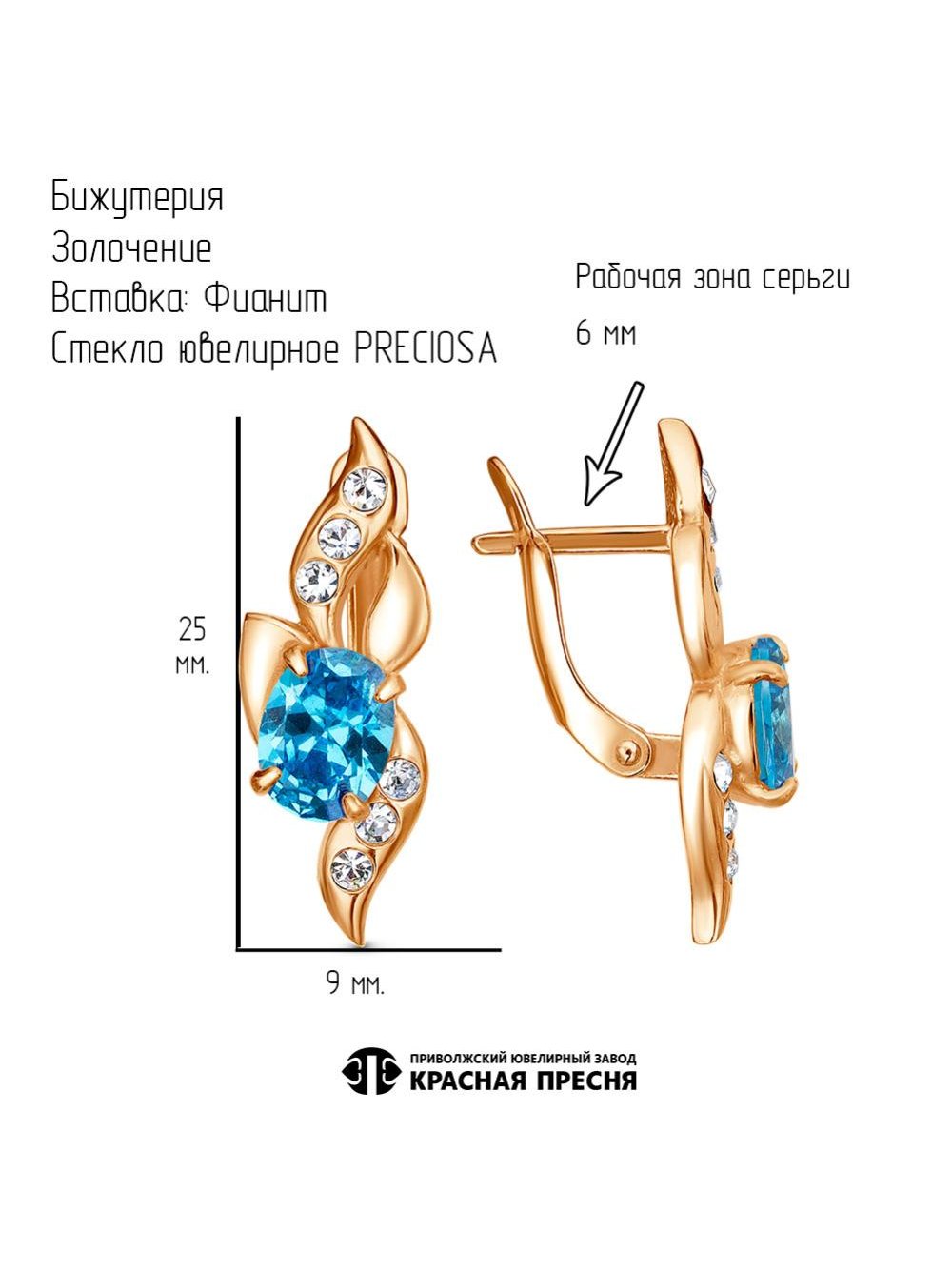 Серьги бижутерия, покрытие - золочение, вставка - стекло ювелирное preciosa, фианит (недрагоценный камень)
