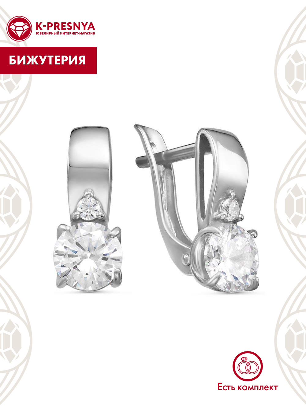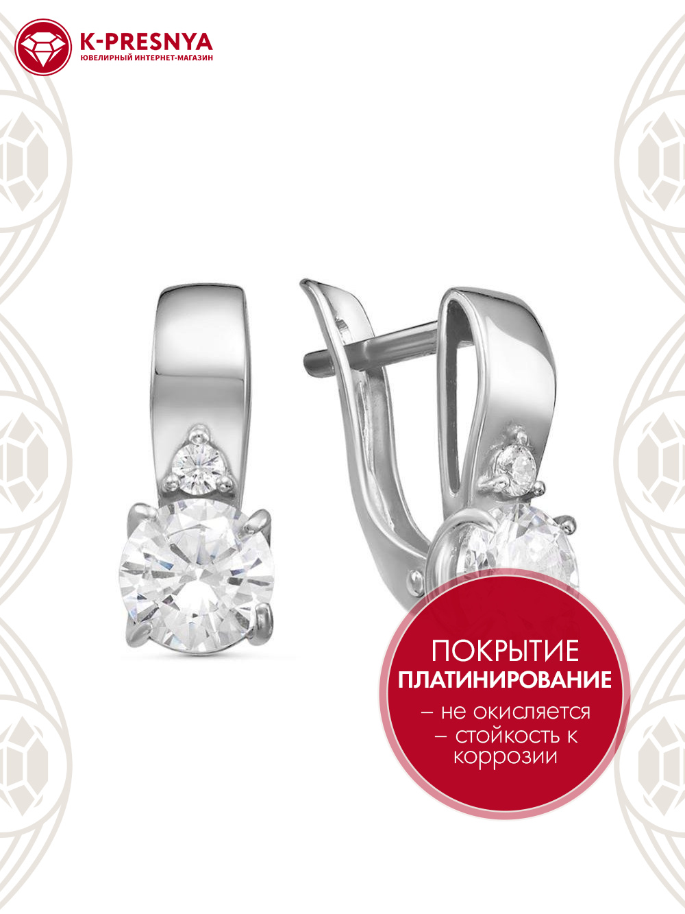 Серьги бижутерия, покрытие - платинирование, вставка - фианит (недрагоценный камень)