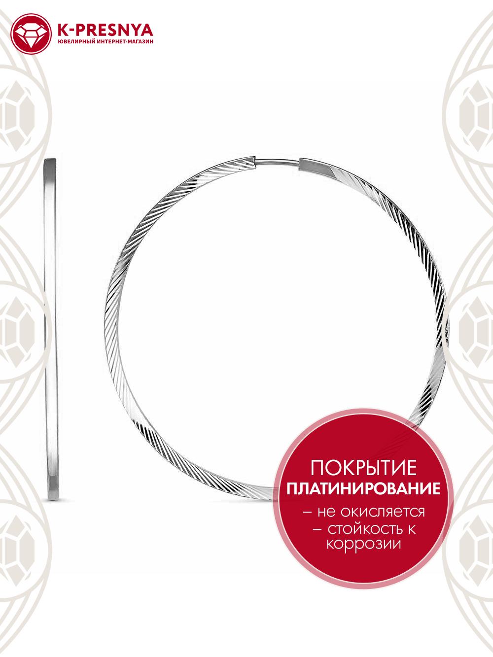 Серьги серебро 925 пробы, покрытие - платинирование, отделка - алмазная грань, без вставок