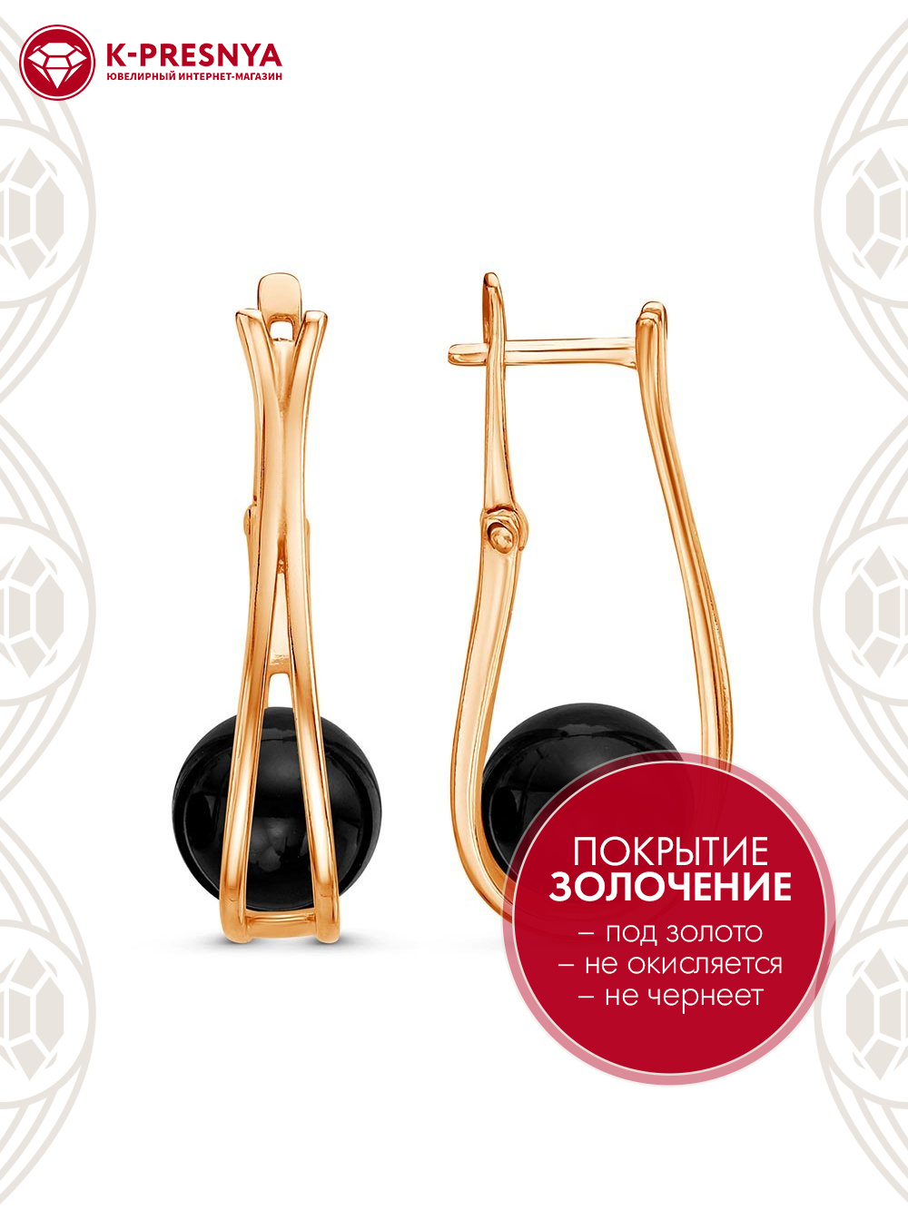 Серьги серебро 925 пробы, покрытие - золочение, вставка - имитация жемчуга