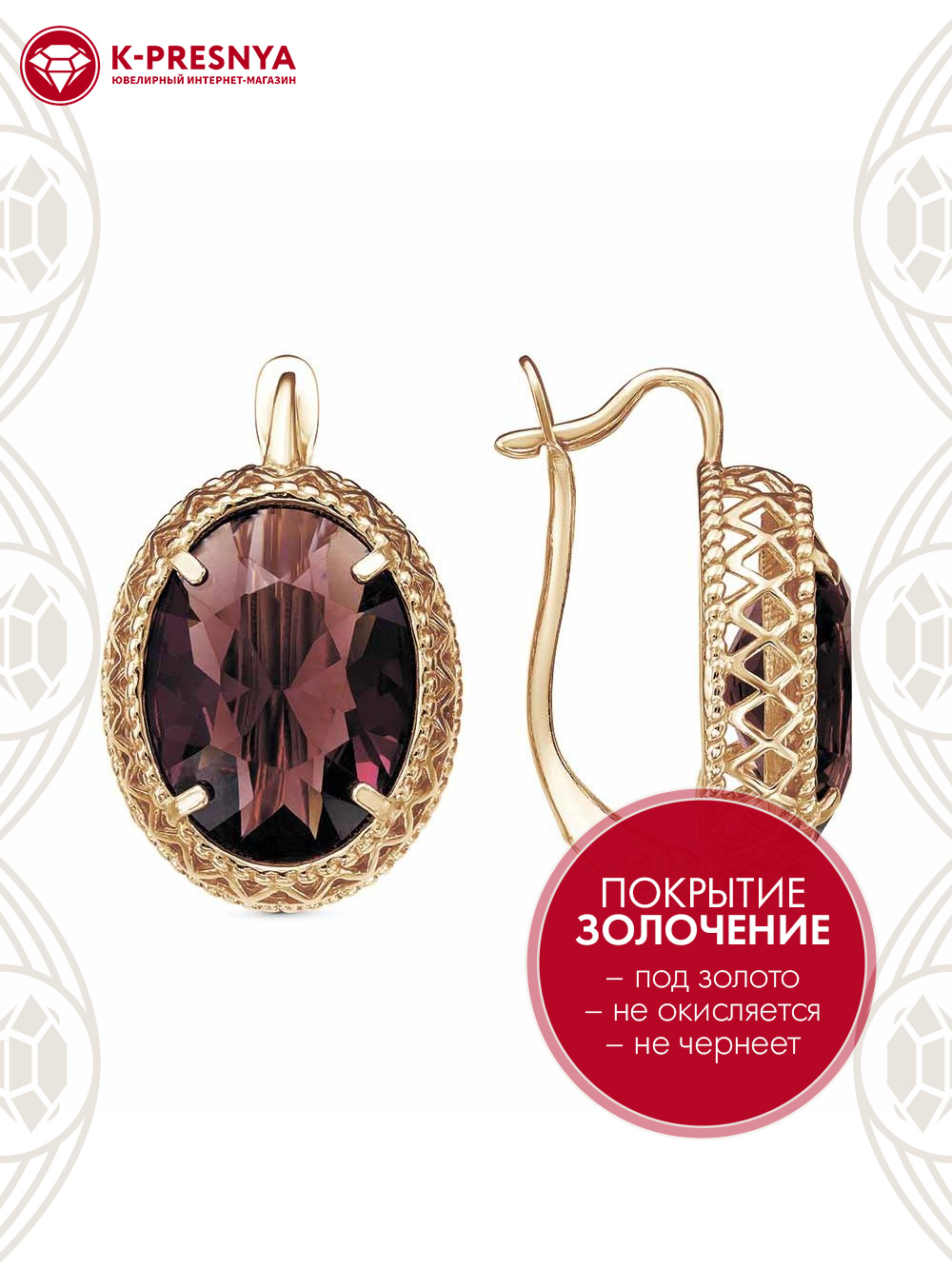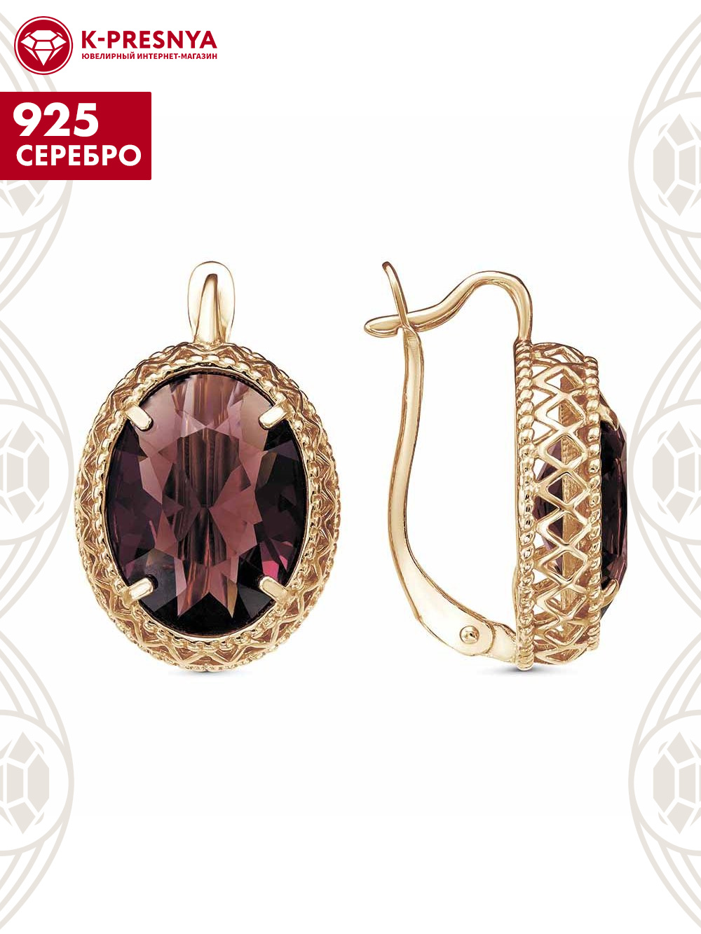 Серьги серебро 925 пробы, покрытие - золочение, вставка - синтетический корунд