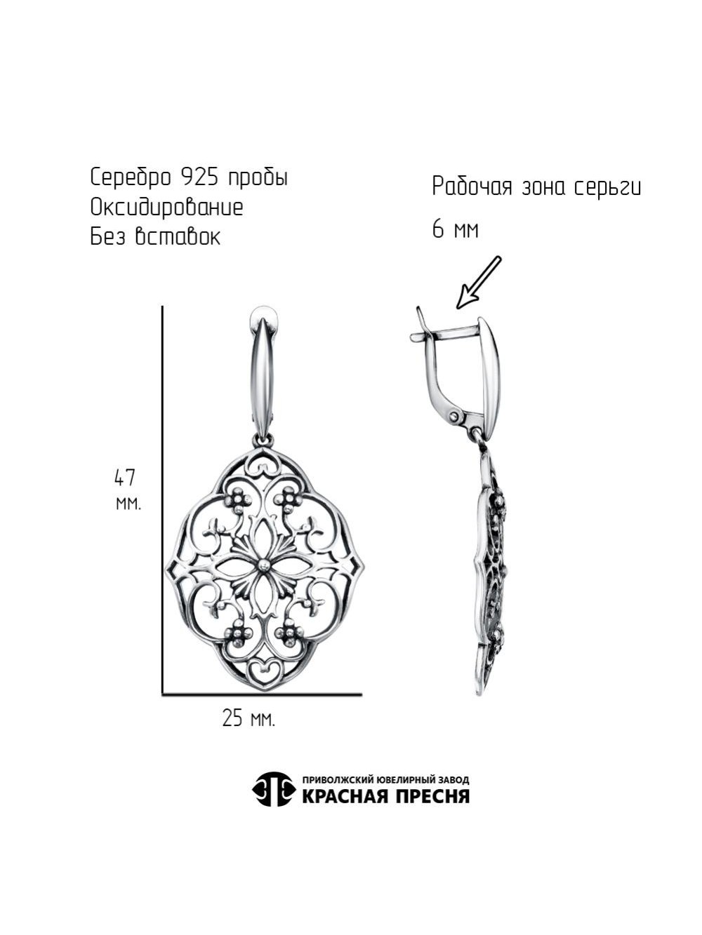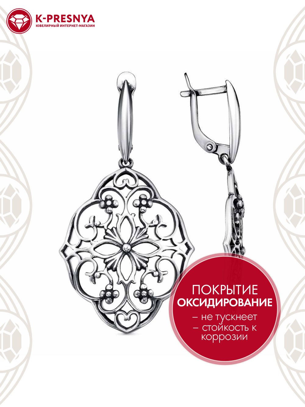 Серьги серебро 925 пробы, покрытие - оксидирование, без вставок