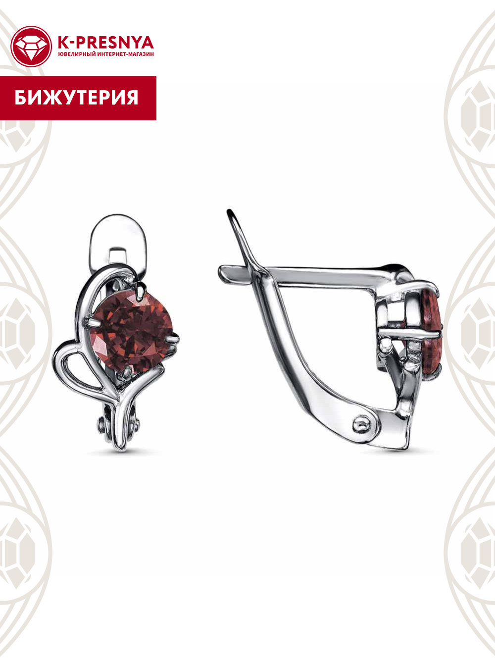 Серьги бижутерия, покрытие - серебрение с оксидированием, вставка - фианит (недрагоценный камень)