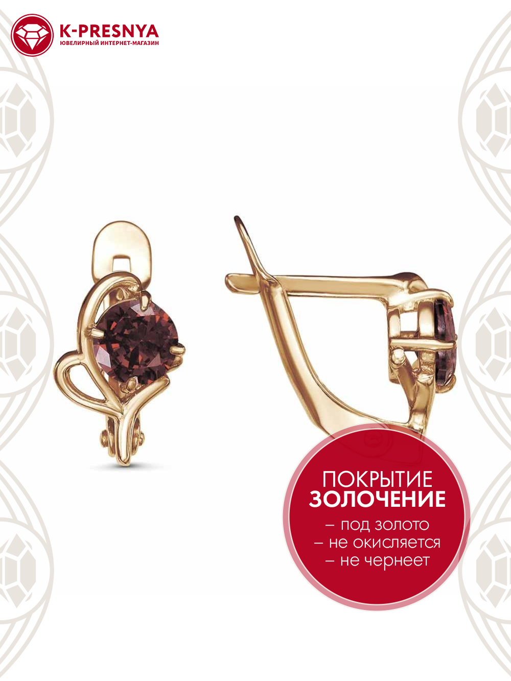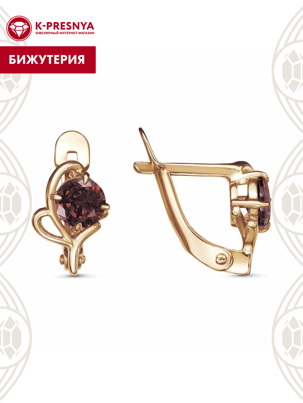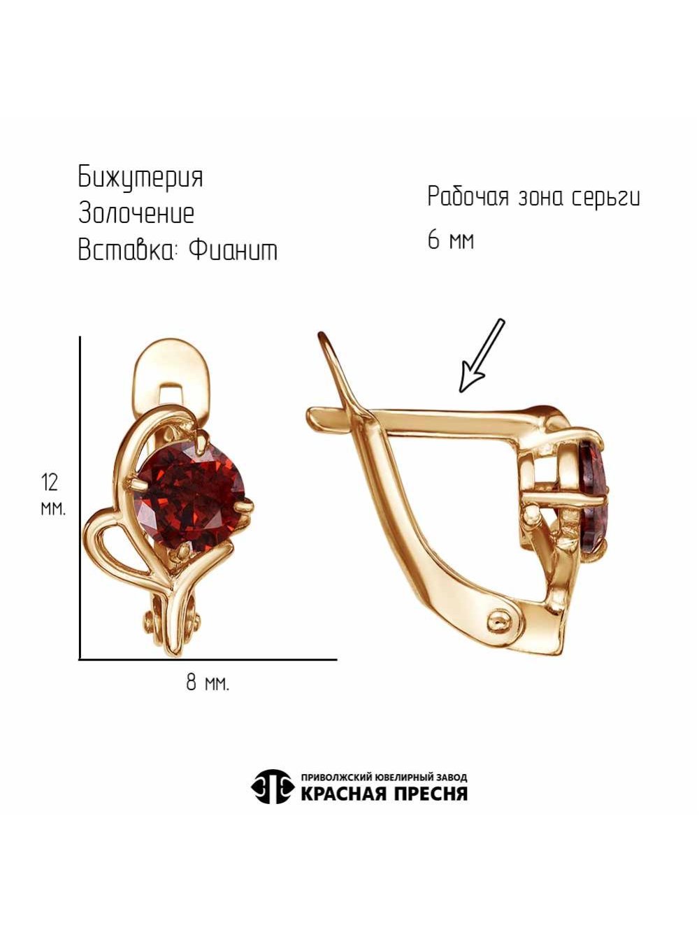 Серьги бижутерия, покрытие - золочение, вставка - фианит (недрагоценный камень)