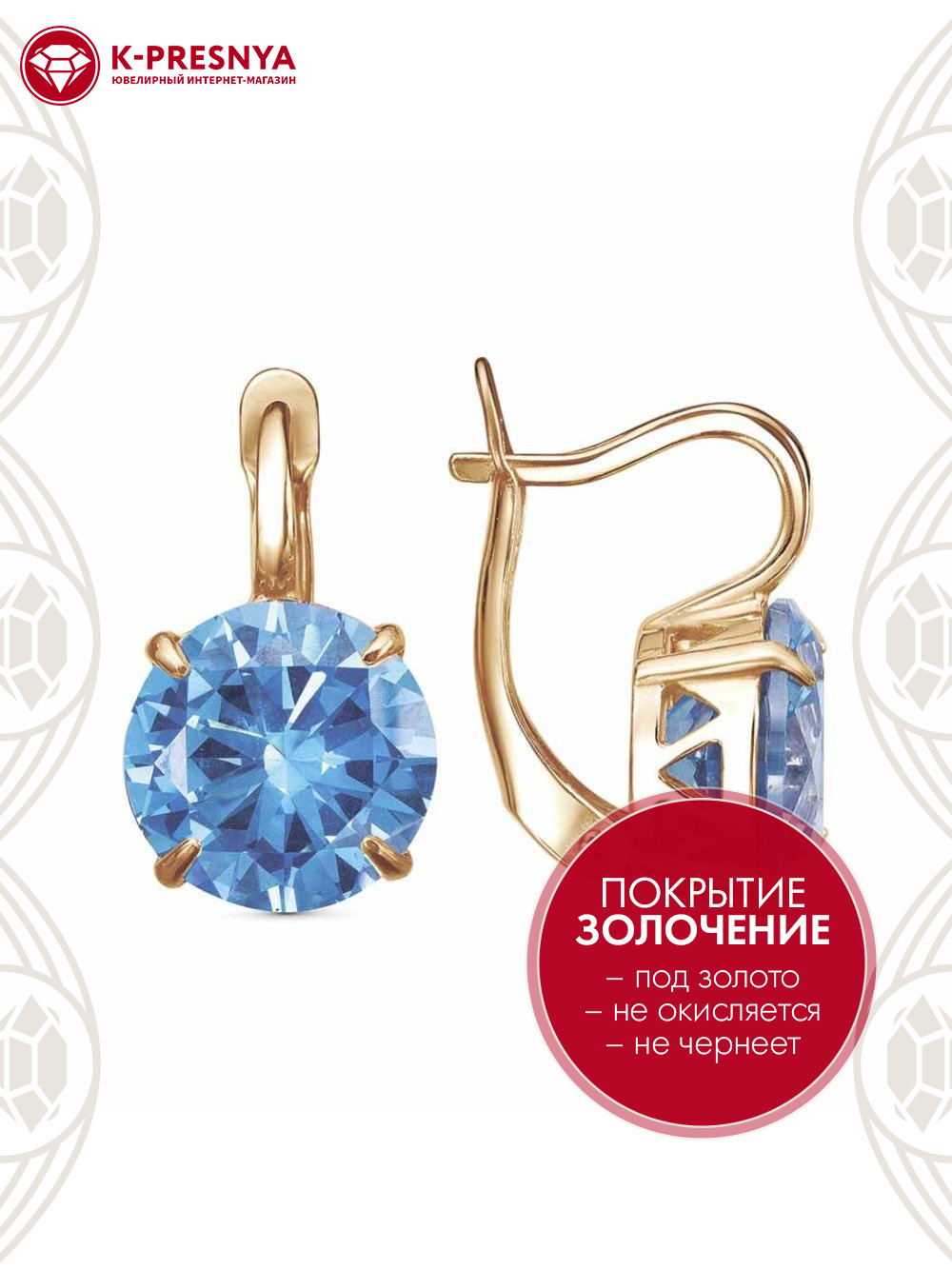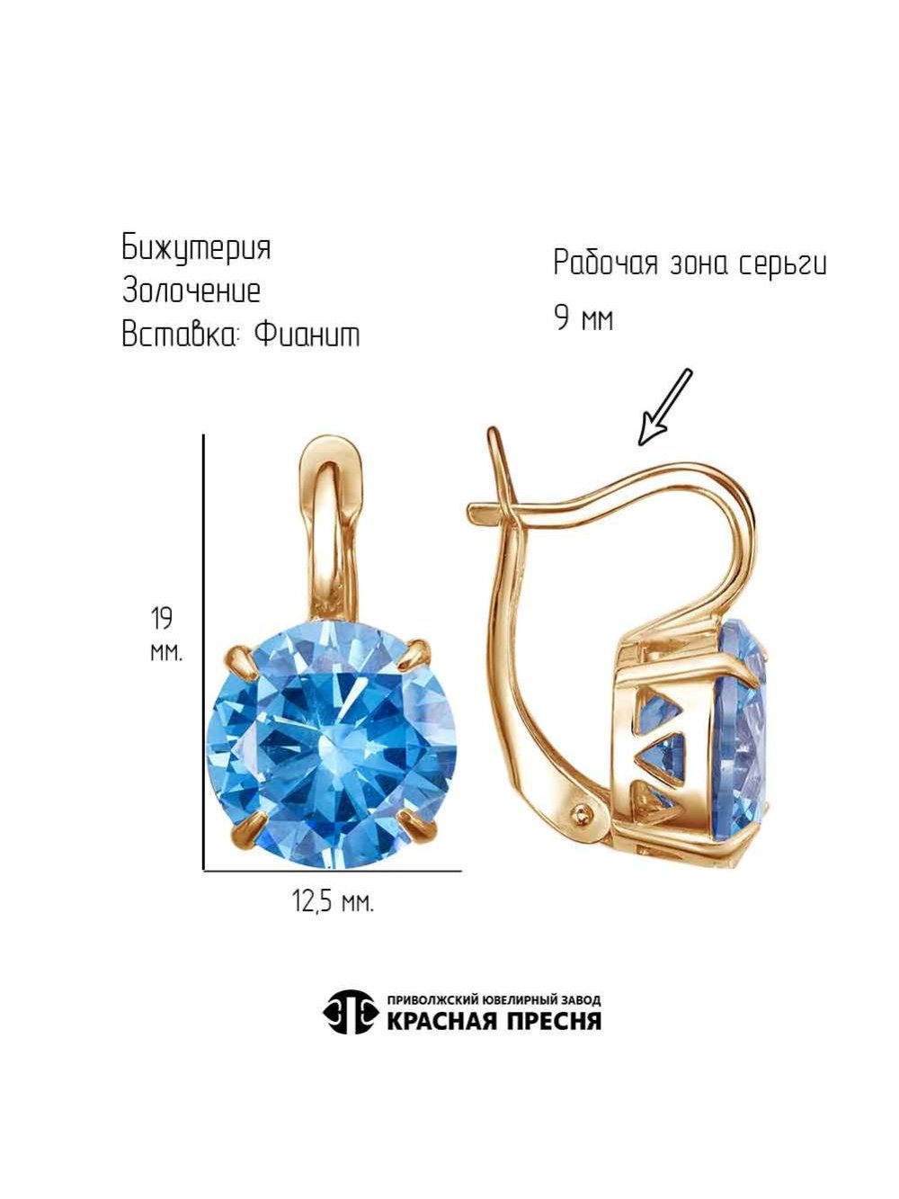 Серьги бижутерия, покрытие - золочение, вставка - фианит (недрагоценный камень)