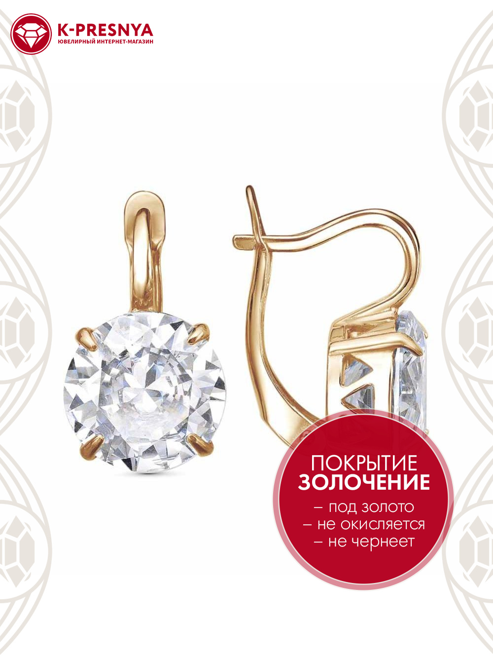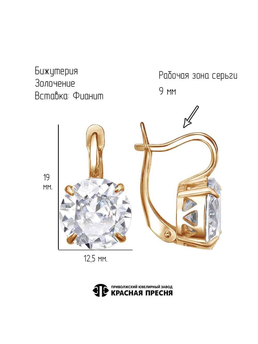 Серьги бижутерия, покрытие - золочение, вставка - фианит (недрагоценный камень)