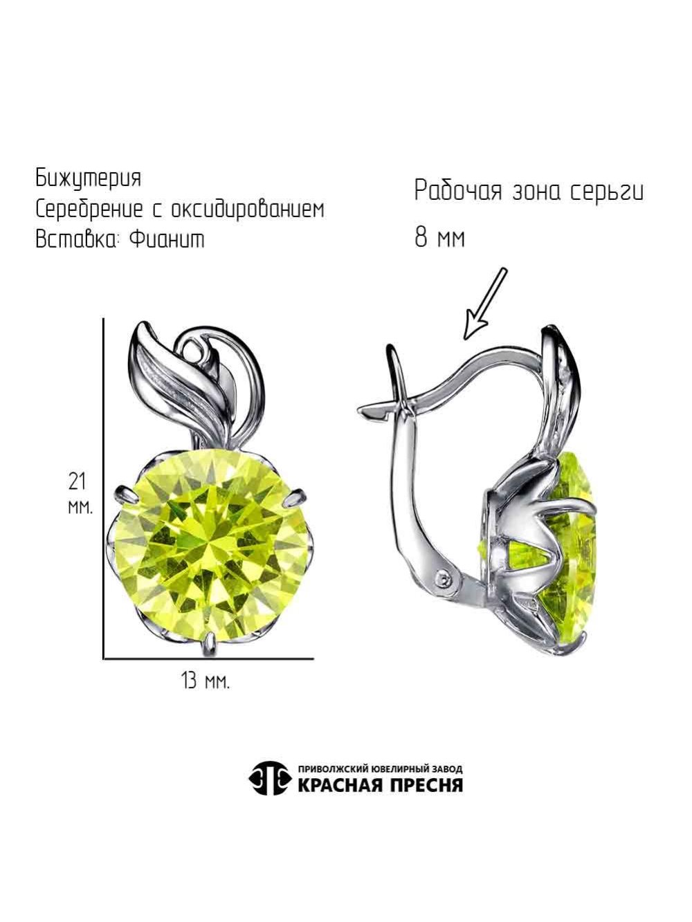 Серьги бижутерия, покрытие - серебрение с оксидированием, вставка - фианит (недрагоценный камень)