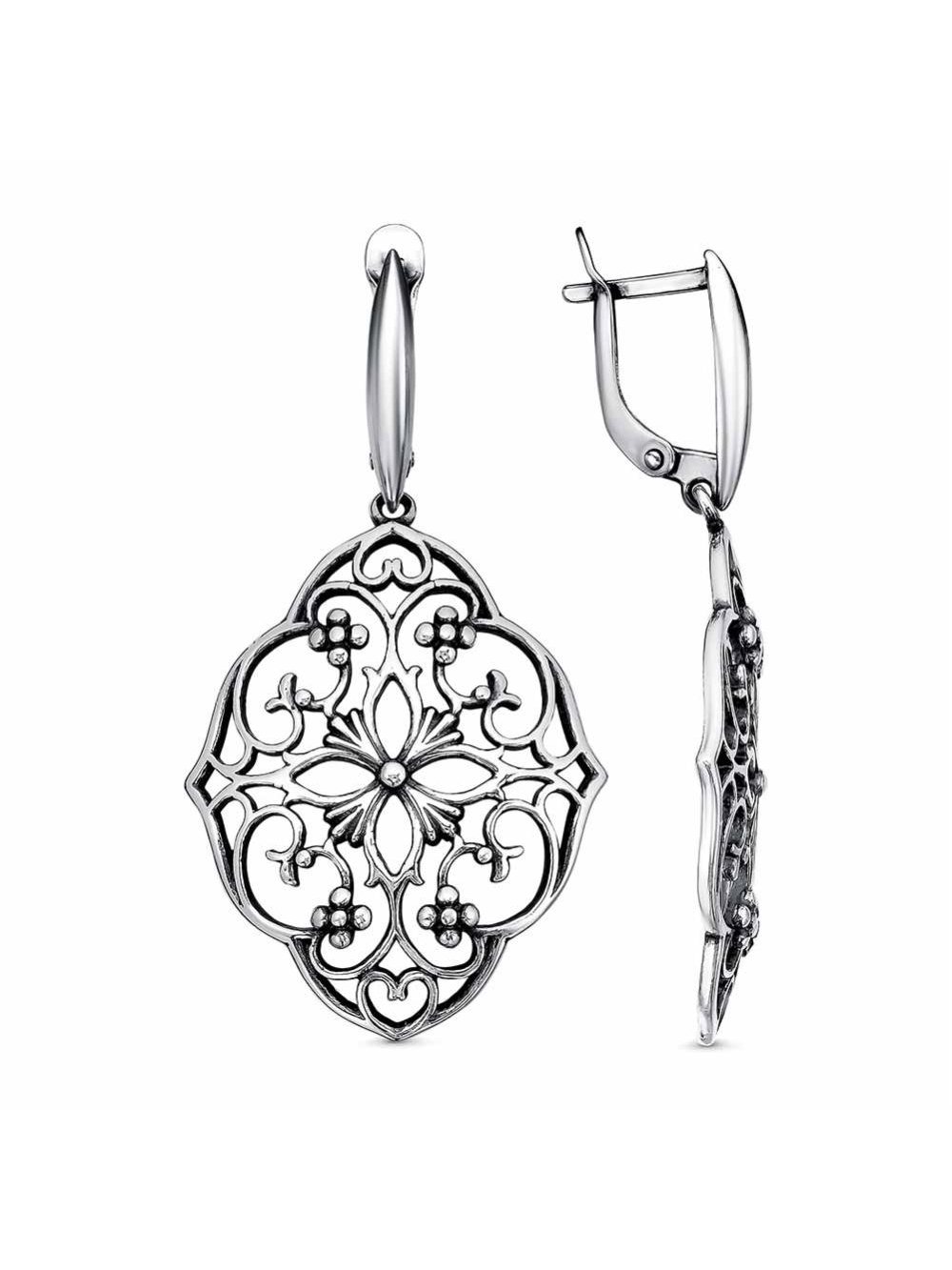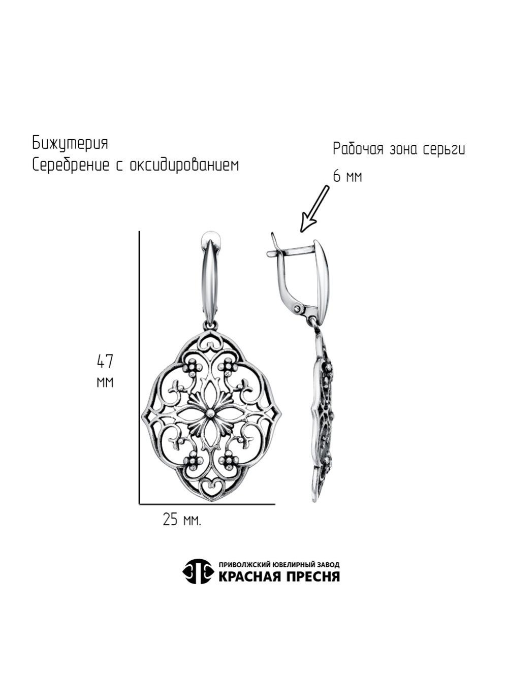 Серьги бижутерия, покрытие - серебрение с оксидированием, без вставок