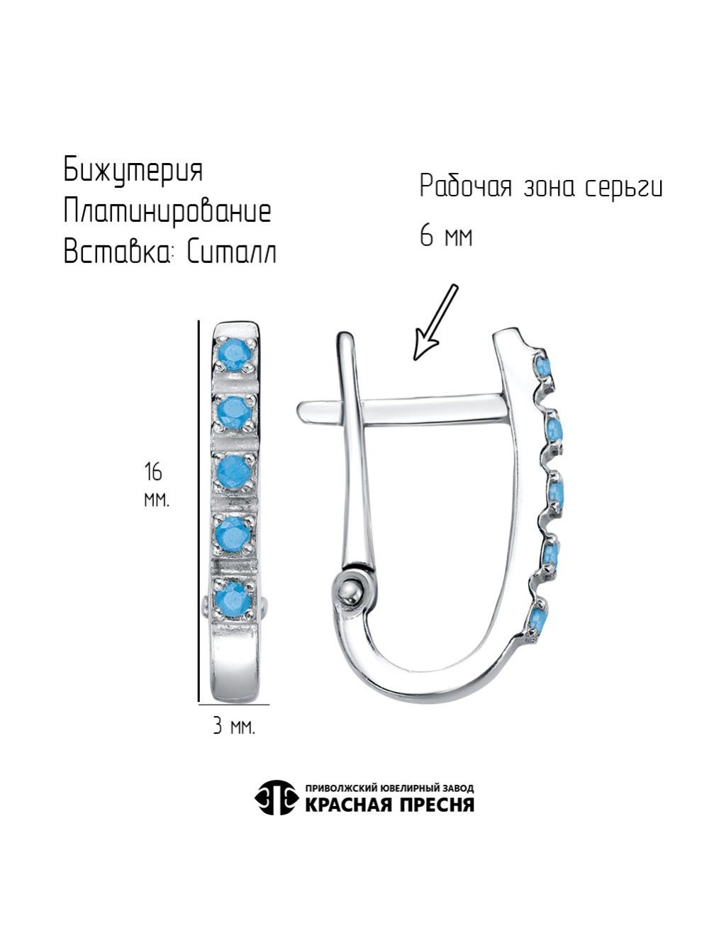 Серьги бижутерия, покрытие - платинирование, вставка - ситалл