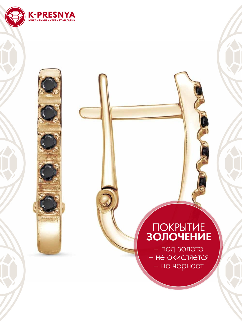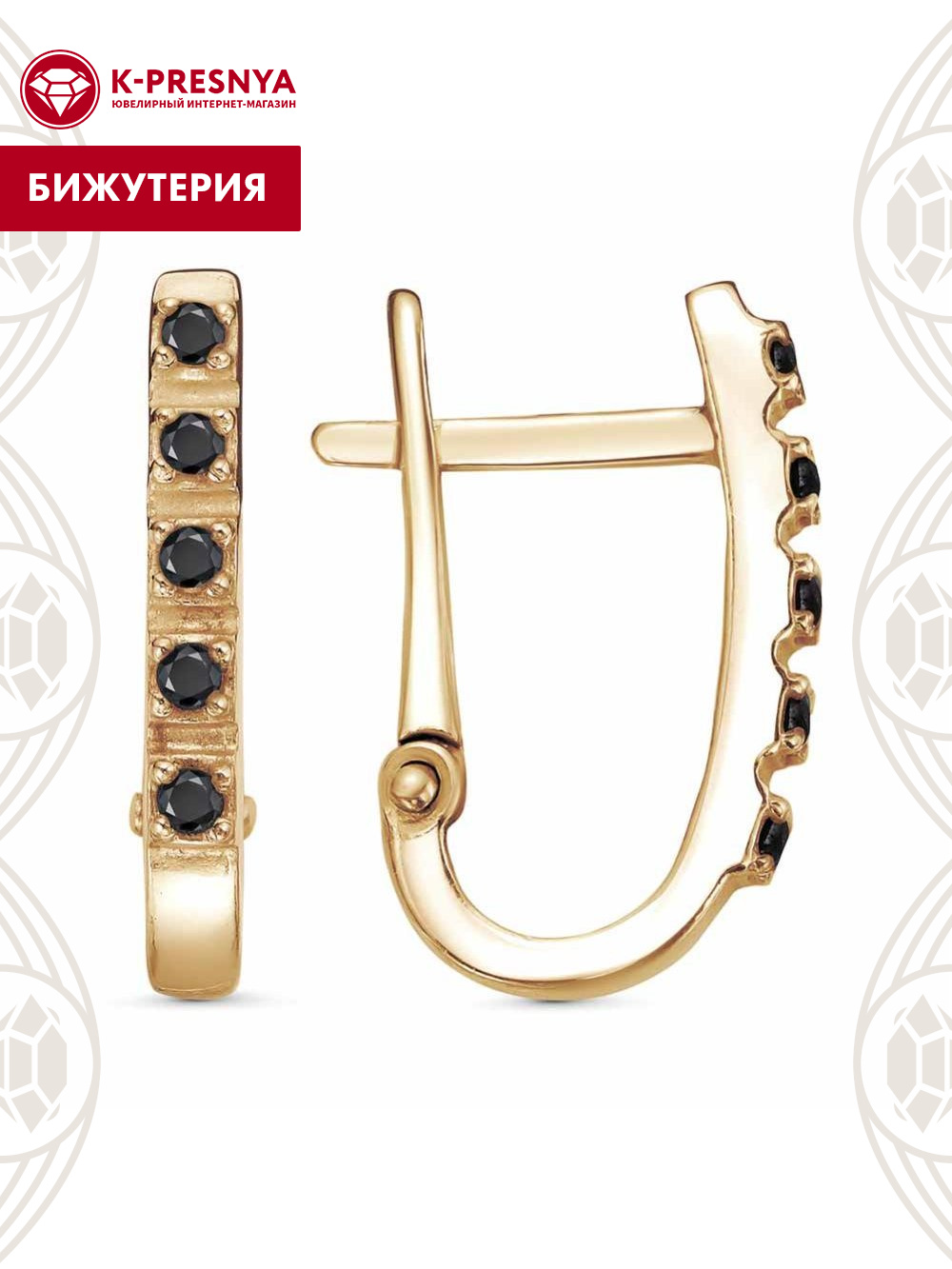 Серьги бижутерия, покрытие - золочение, вставка - фианит (недрагоценный камень)