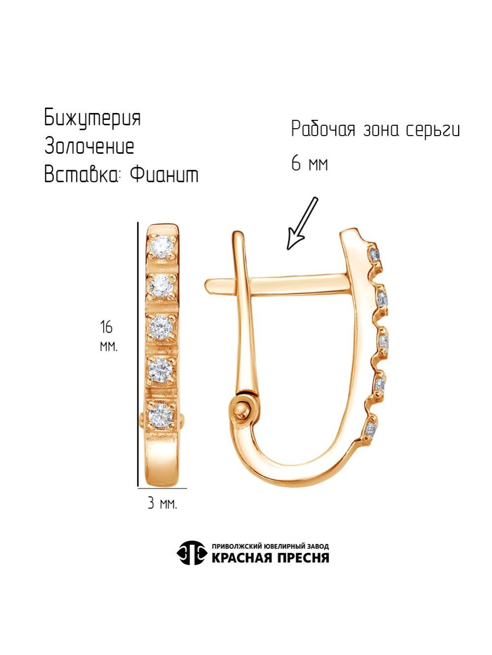 Серьги бижутерия, покрытие - золочение, вставка - фианит (недрагоценный камень)