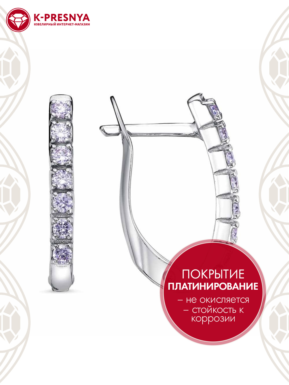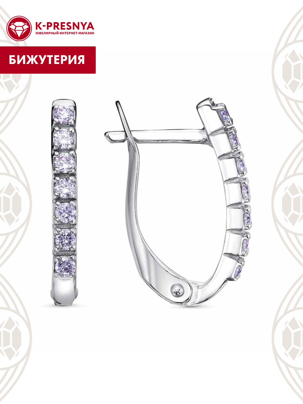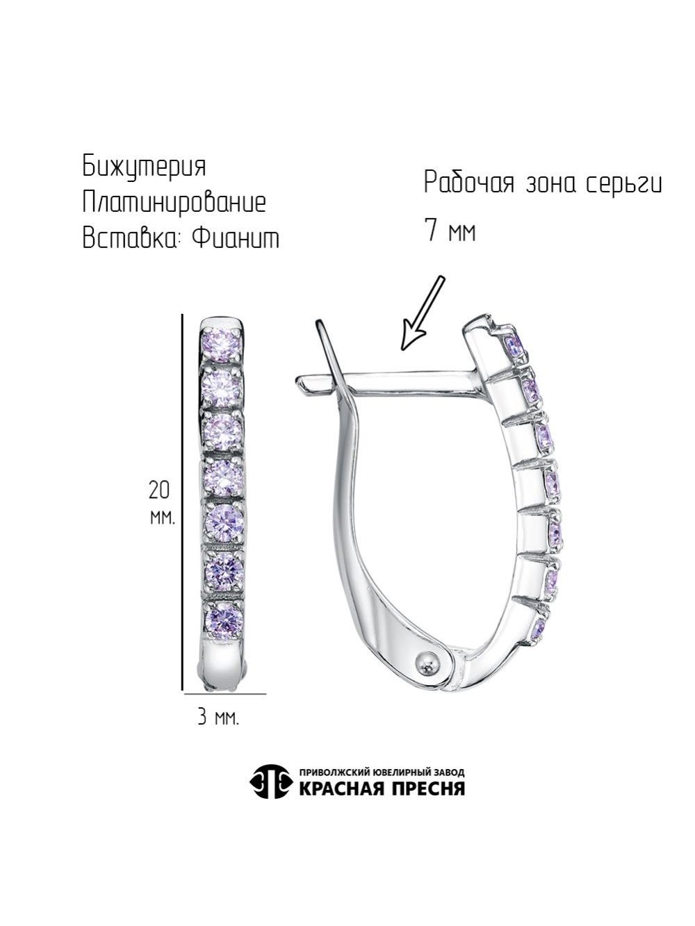 Серьги бижутерия, покрытие - платинирование, вставка - фианит (недрагоценный камень)