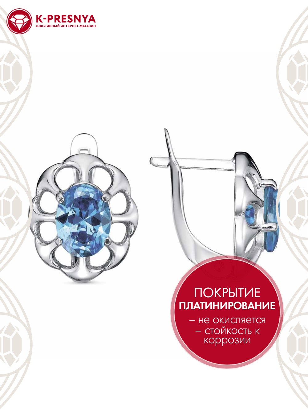 Серьги бижутерия, покрытие - платинирование, вставка - фианит (недрагоценный камень)