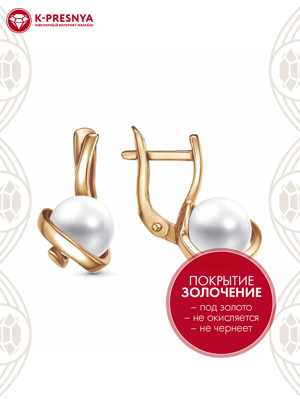 Серьги серебро 925 пробы, покрытие - золочение, вставка - имитация жемчуга