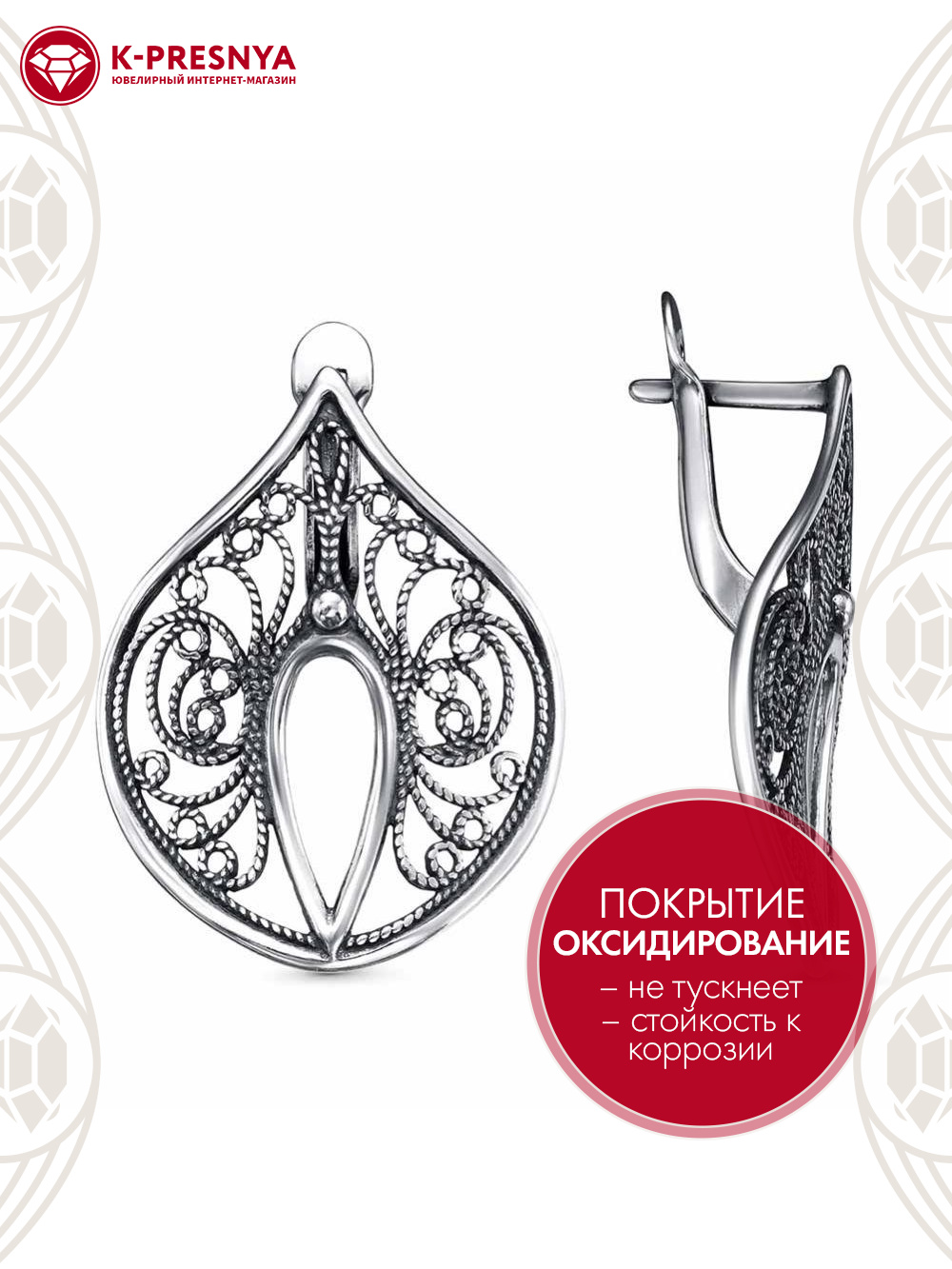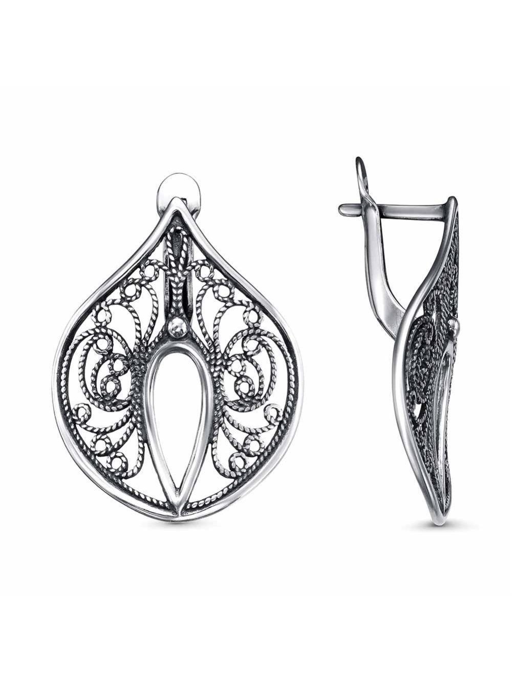 Серьги серебро 925 пробы, покрытие - оксидирование, без вставок