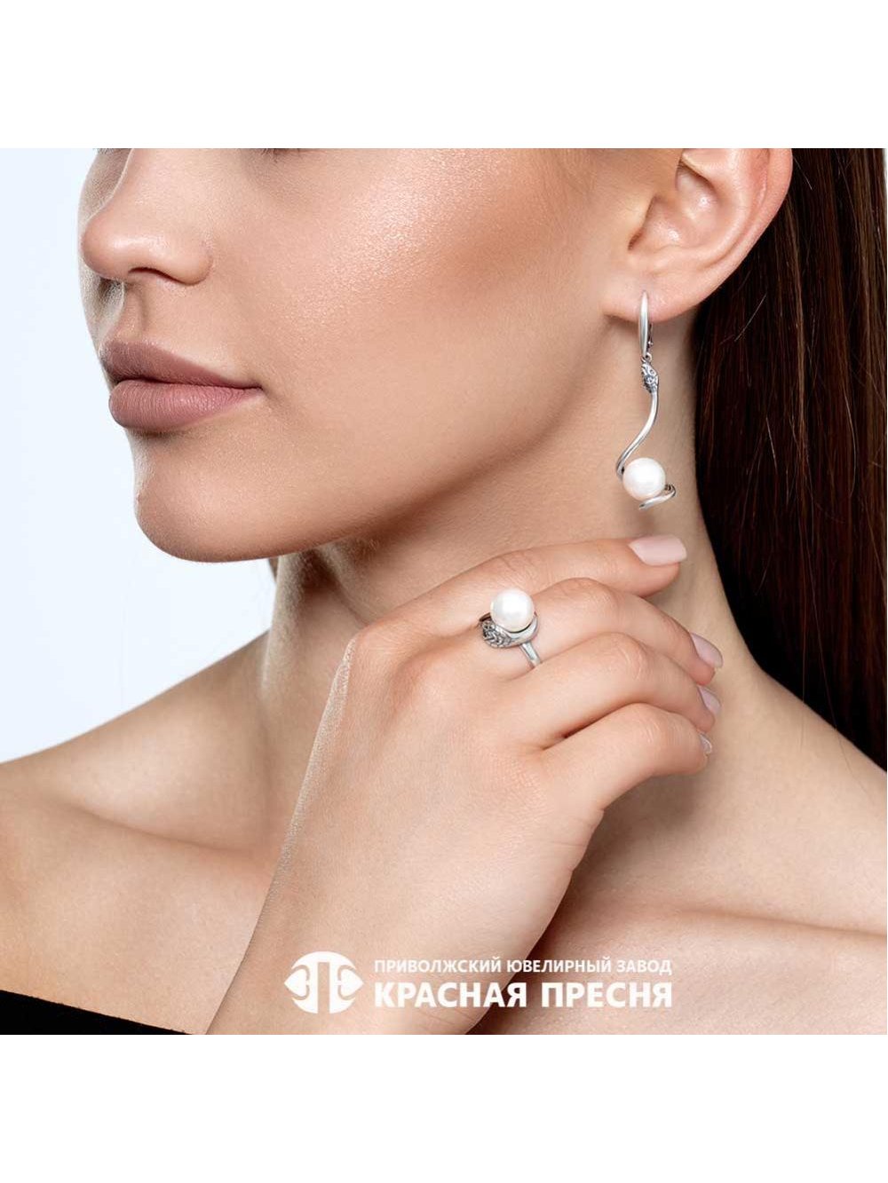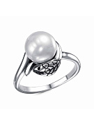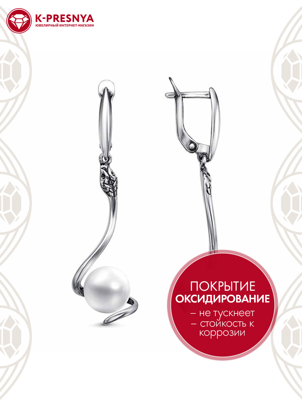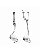 Серьги серебро 925 пробы, покрытие - оксидирование, вставка - имитация жемчуга