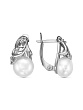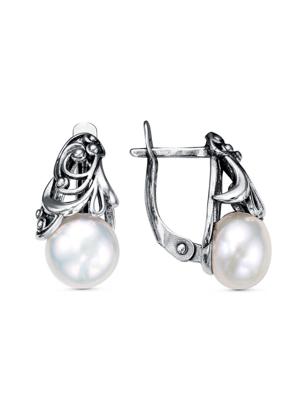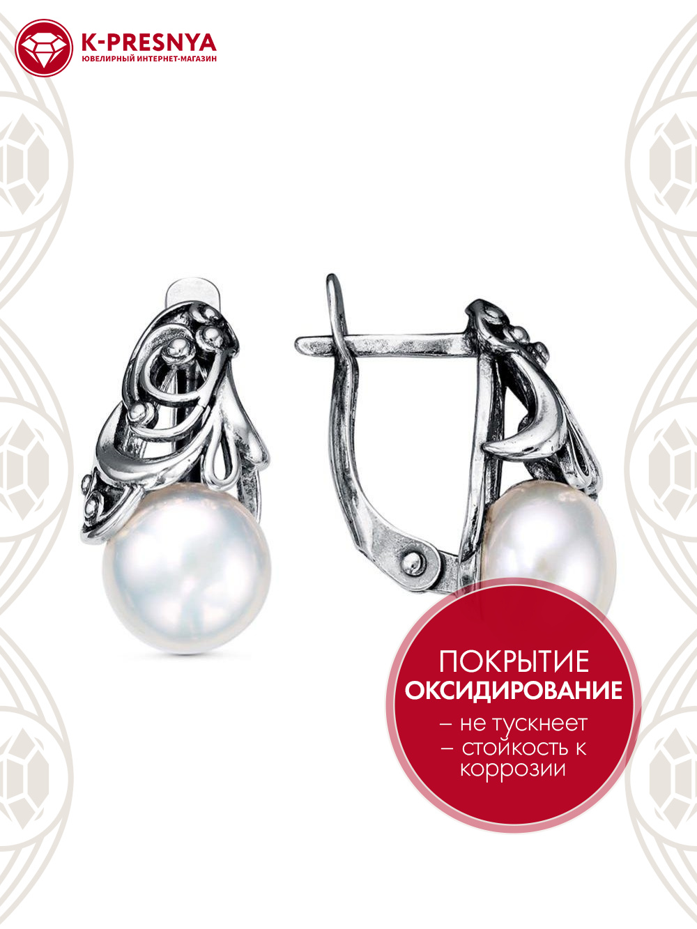 Серьги серебро 925 пробы, покрытие - оксидирование, вставка - культивированный жемчуг