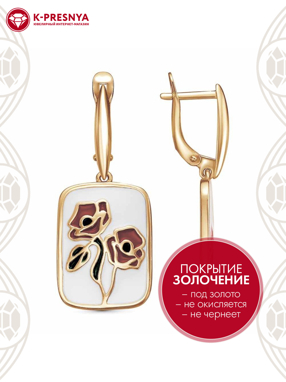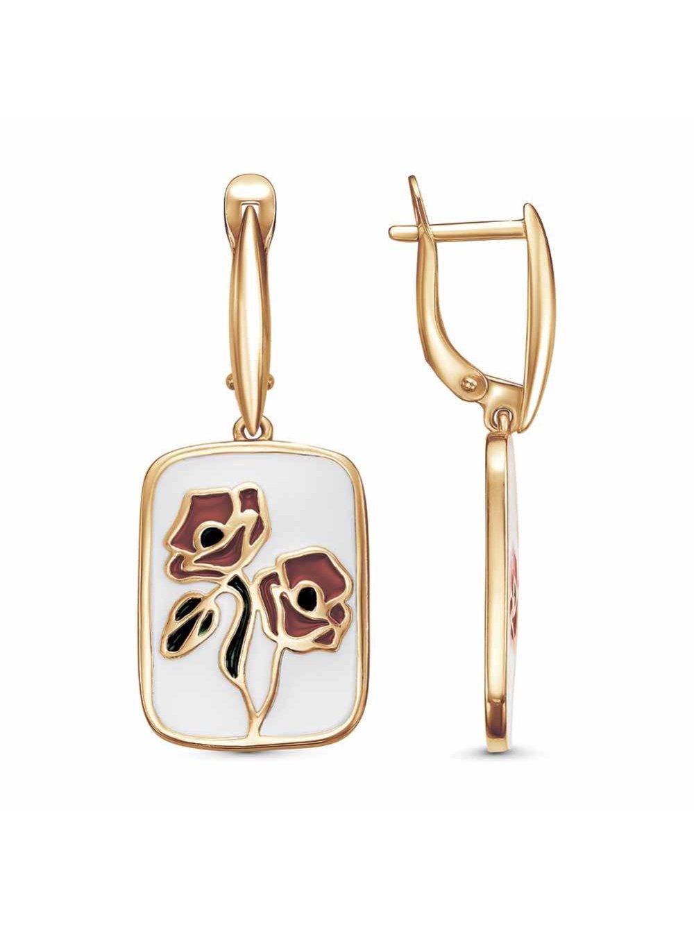 Серьги серебро 925 пробы, покрытие - золочение, отделка - эмаль, без вставок