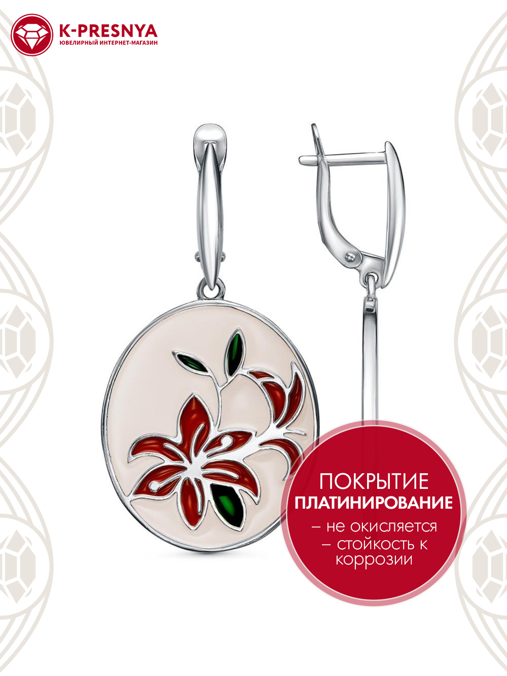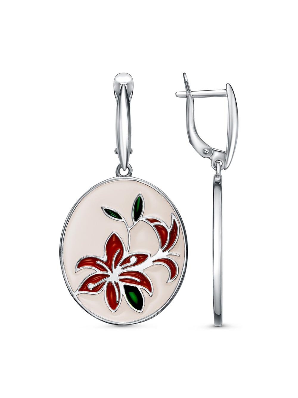 Серьги серебро 925 пробы, покрытие - платинирование, отделка - эмаль, без вставок