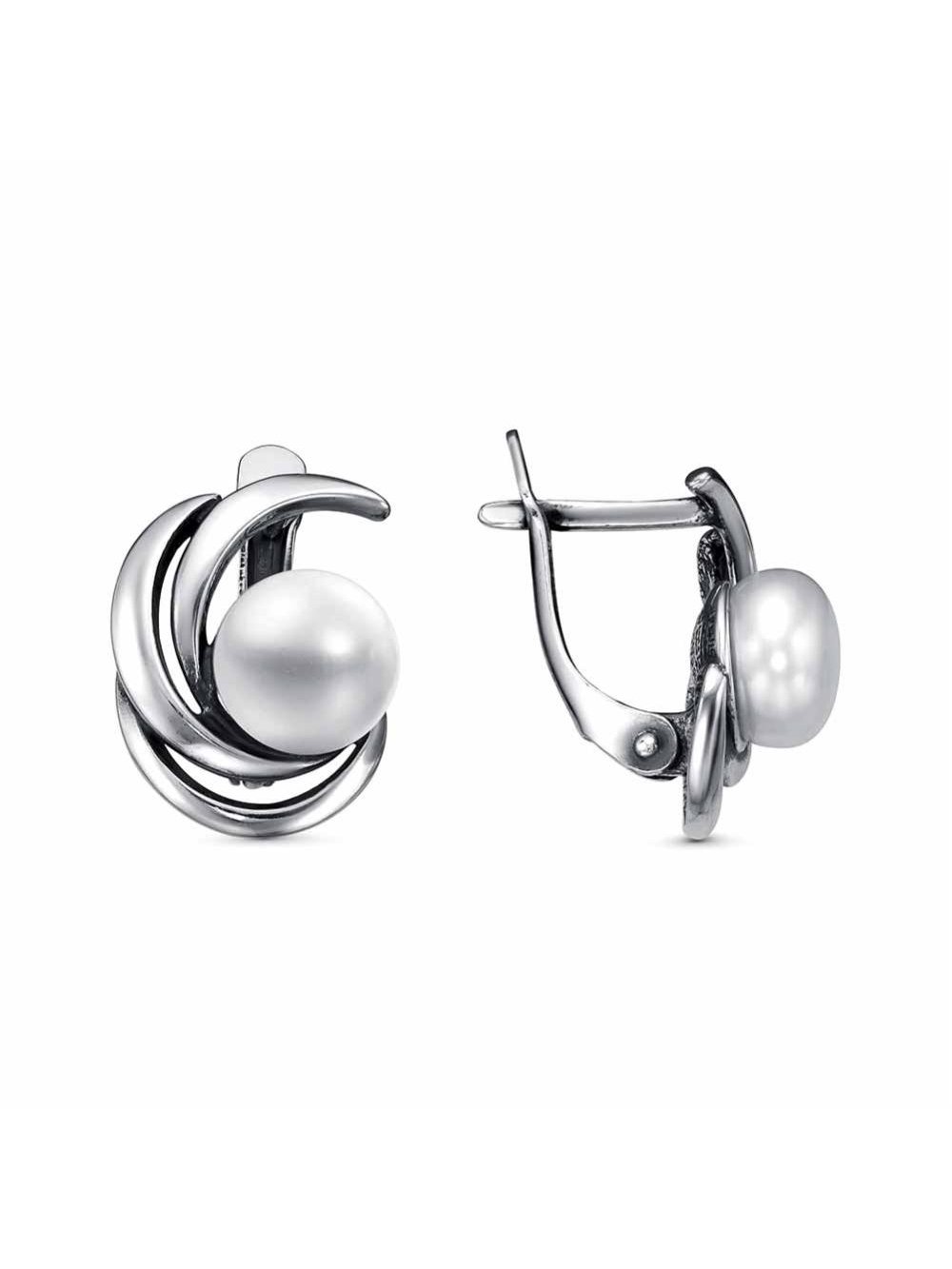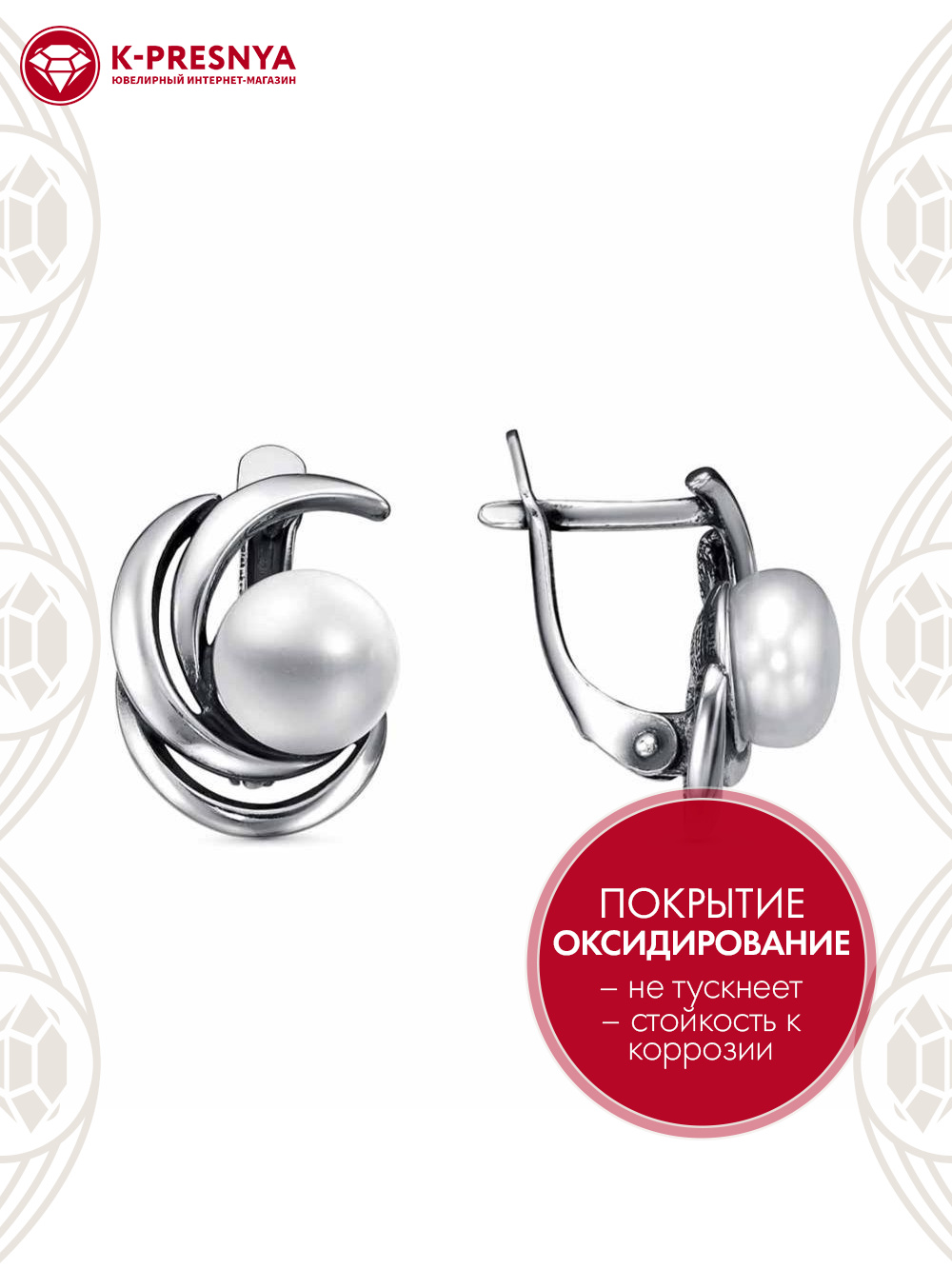 Серьги серебро 925 пробы, покрытие - оксидирование, вставка - культивированный жемчуг