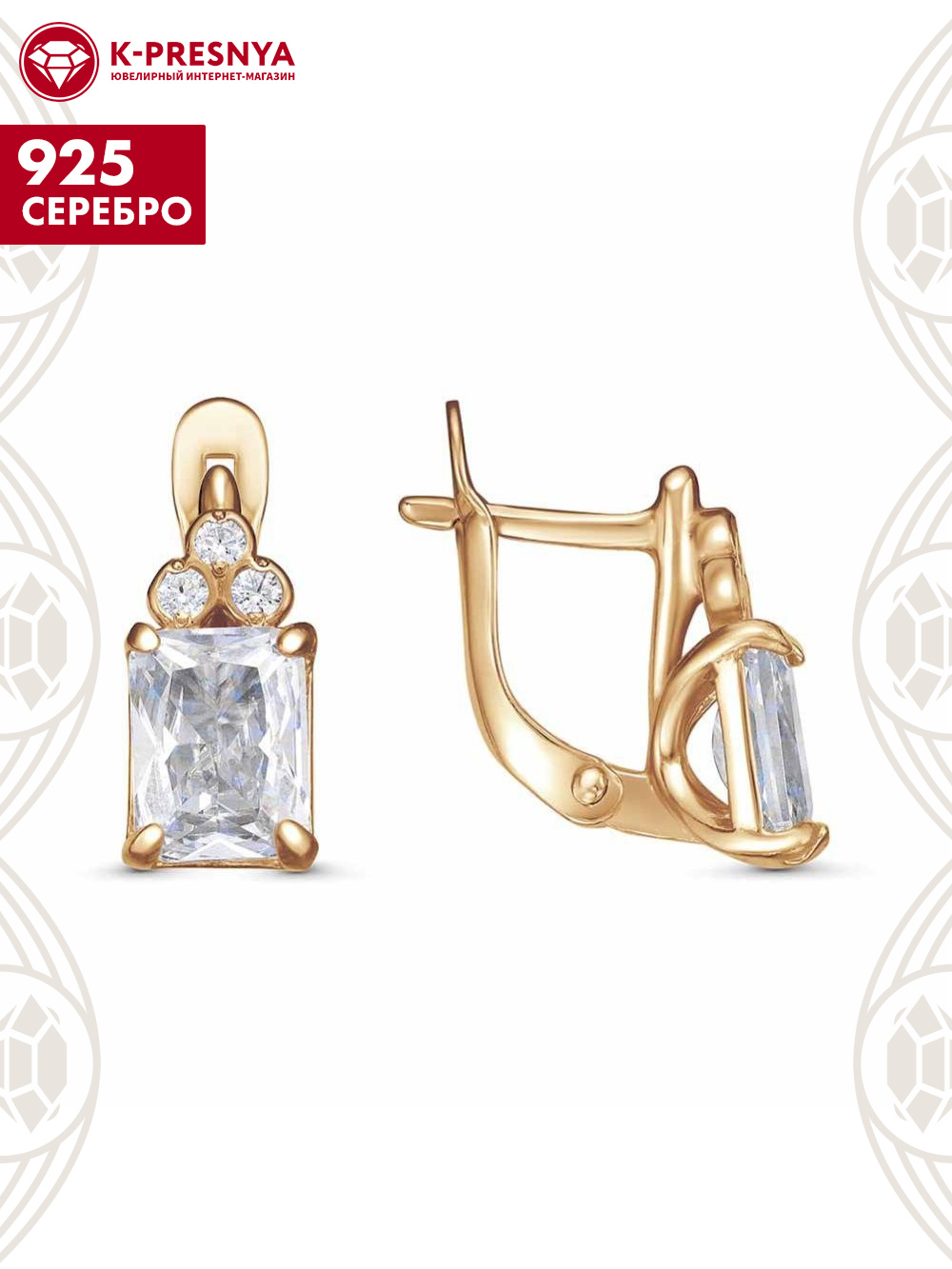Серьги серебро 925 пробы, покрытие - золочение, вставка - фианит (недрагоценный камень)