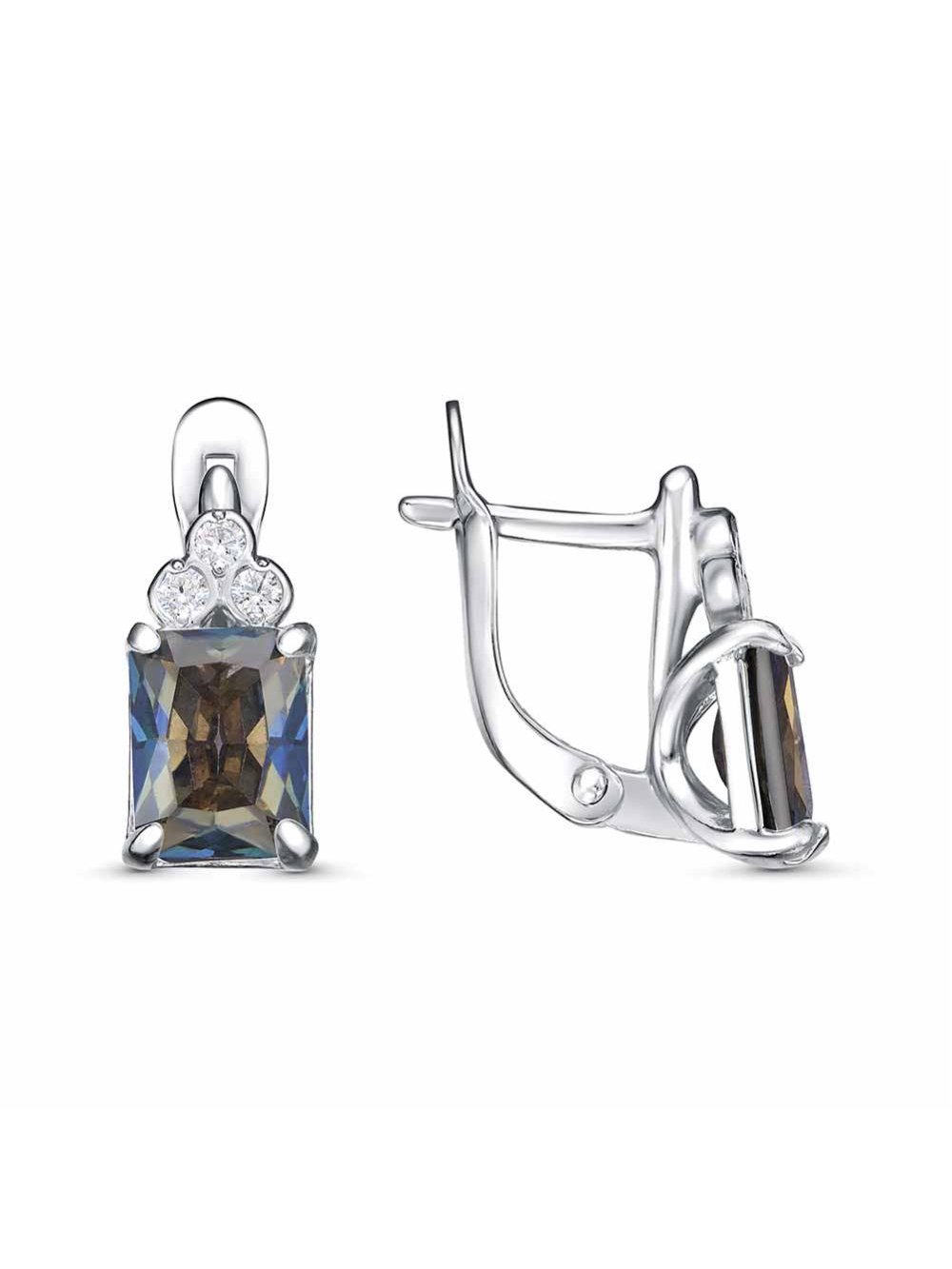 Серьги серебро 925 пробы, покрытие - платинирование, вставка - фианит (недрагоценный камень)