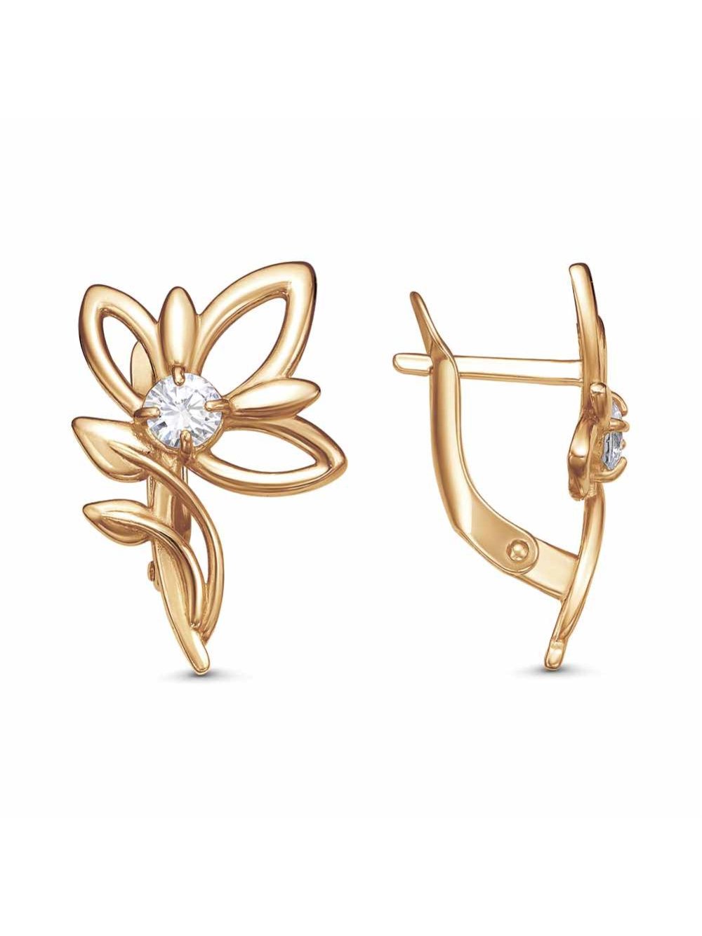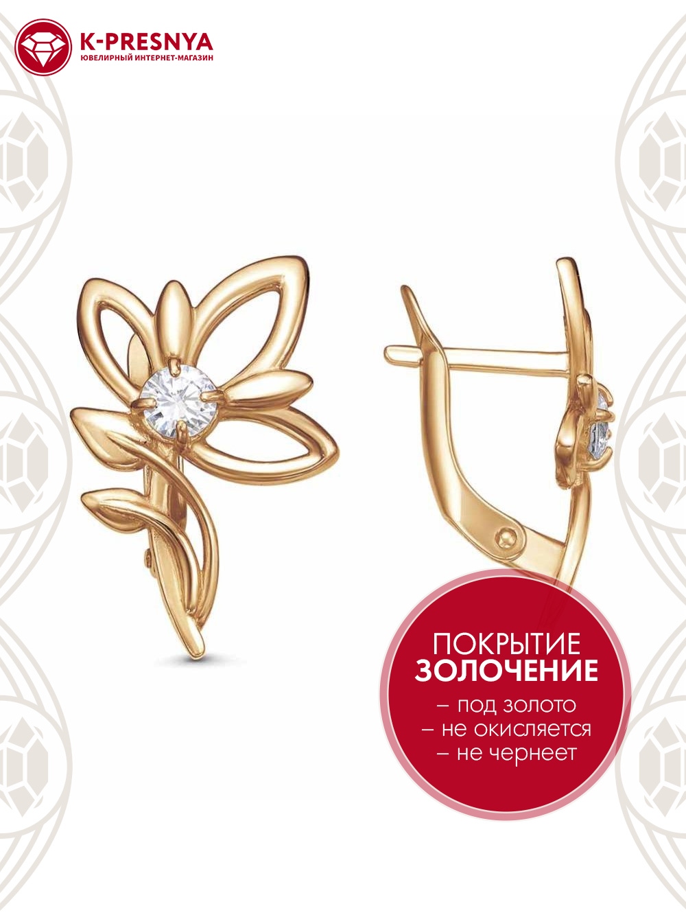 Серьги бижутерия, покрытие - золочение, вставка - фианит (недрагоценный камень)