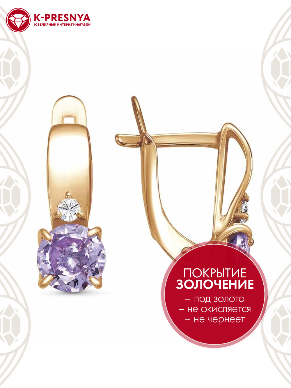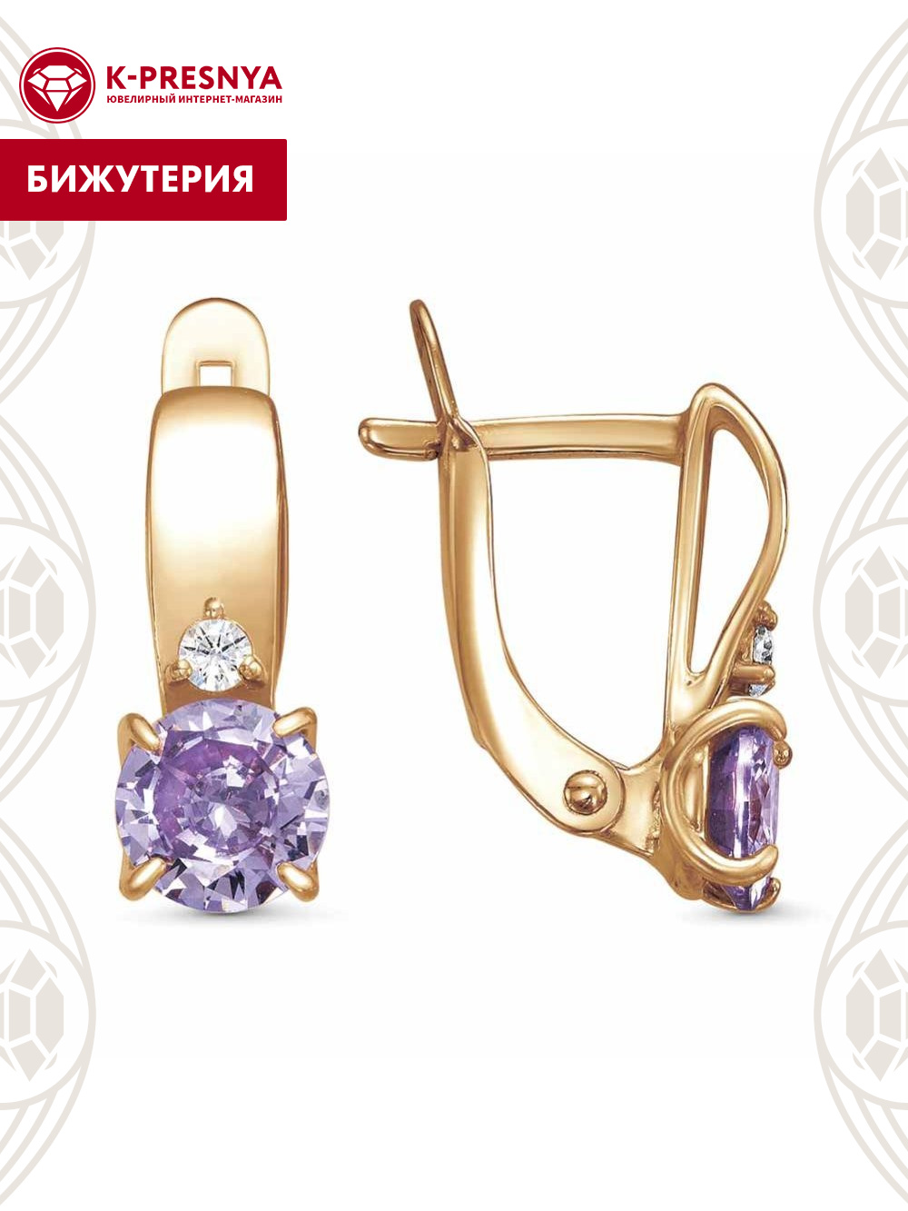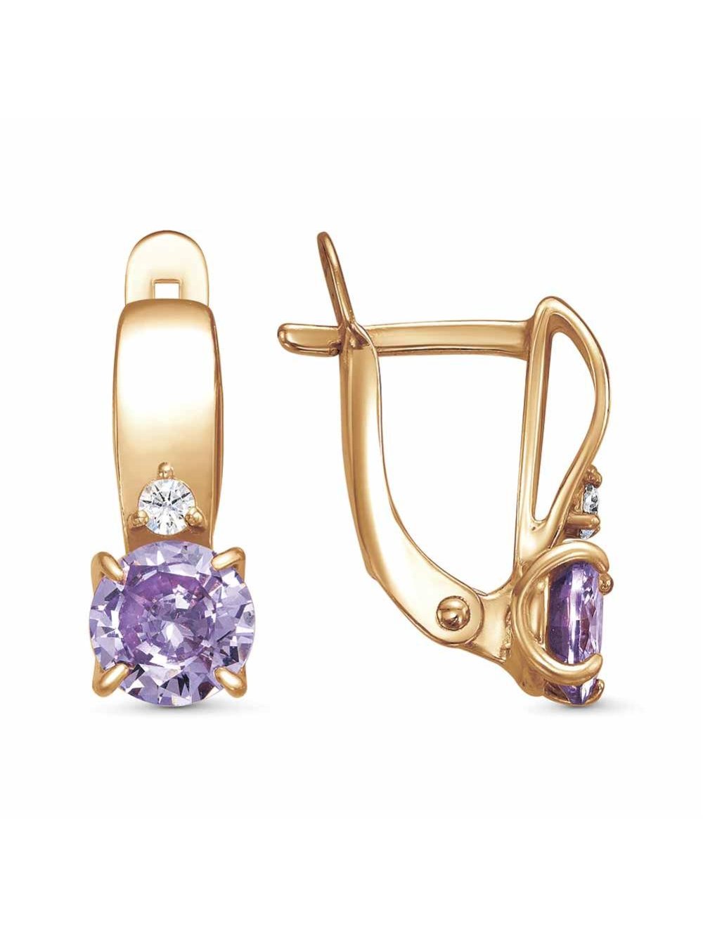Серьги бижутерия, покрытие - золочение, вставка - фианит (недрагоценный камень)