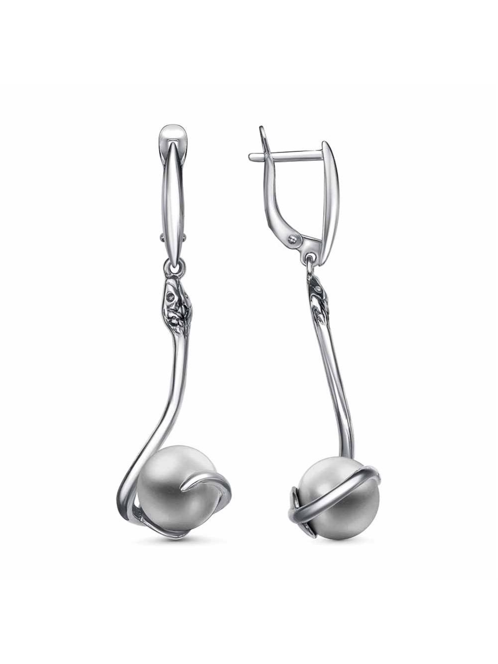 Серьги бижутерия, покрытие - серебрение с оксидированием, вставка - имитация жемчуга