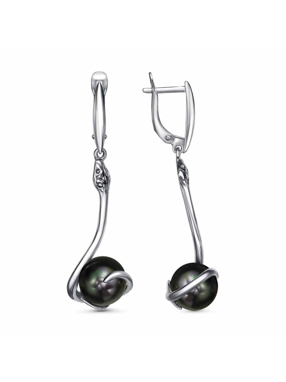 Серьги бижутерия, покрытие - серебрение с оксидированием, вставка - имитация жемчуга