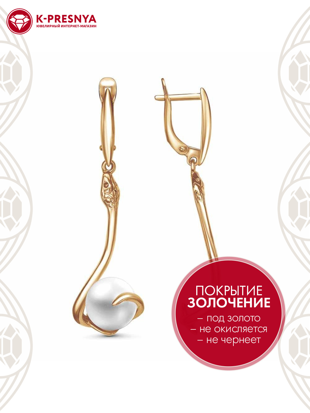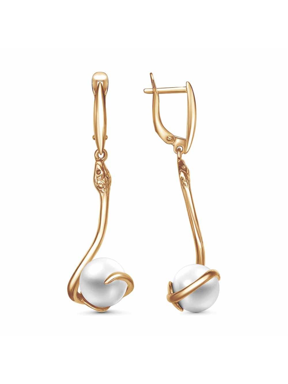 Серьги бижутерия, покрытие - золочение, вставка - имитация жемчуга