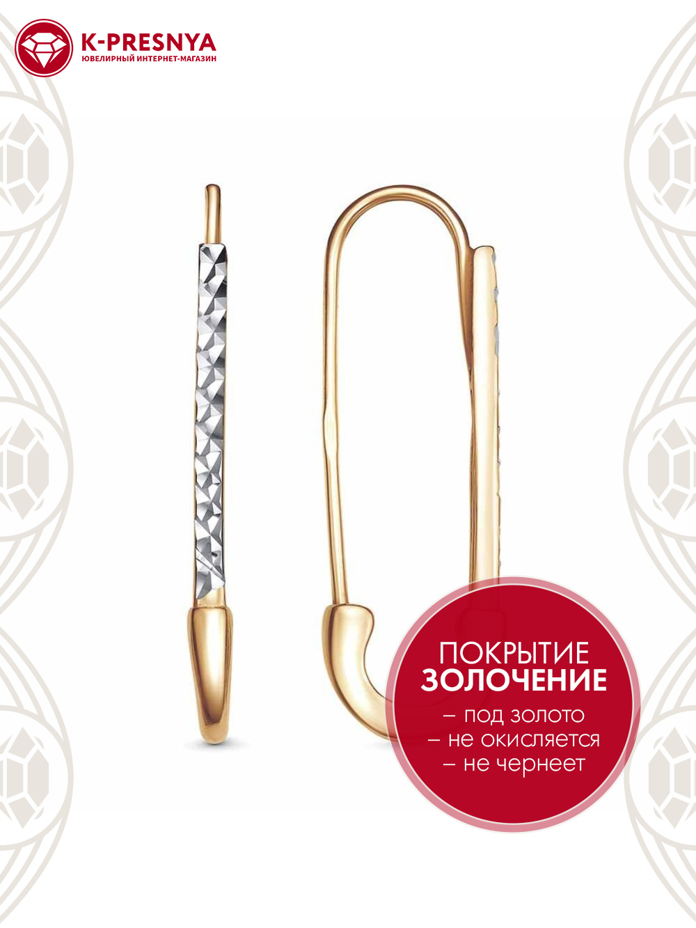 Серьги бижутерия, покрытие - золочение, отделка - алмазная грань, без вставок