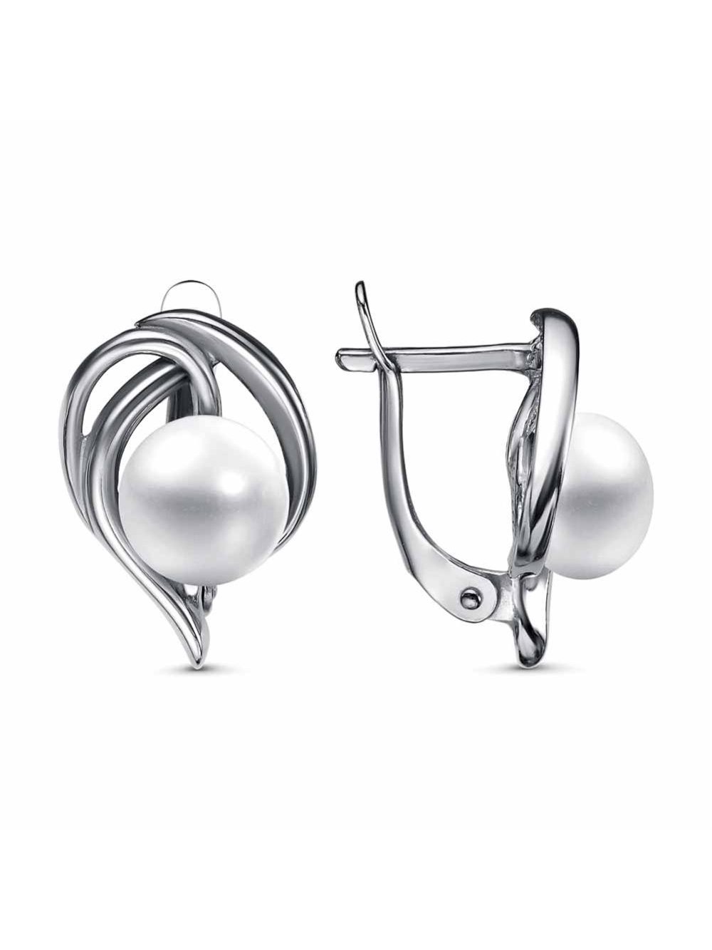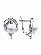 Серьги бижутерия, покрытие - серебрение с оксидированием, вставка - культивированный жемчуг