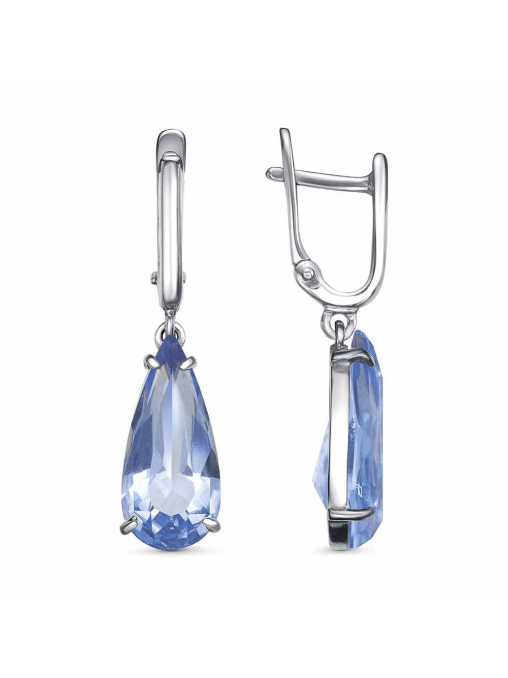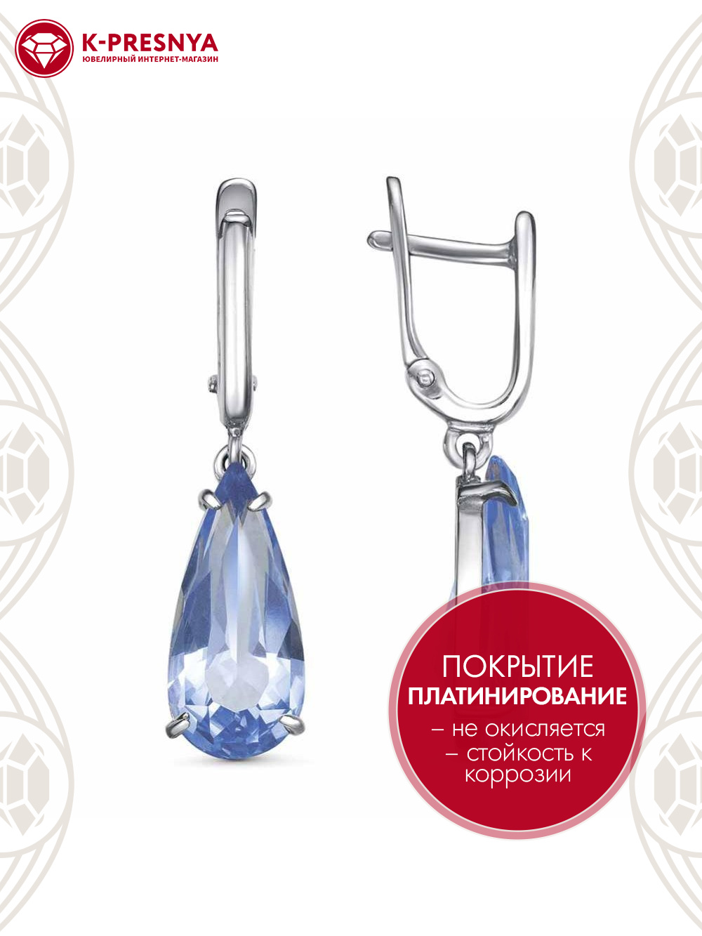 Серьги серебро 925 пробы, покрытие - платинирование, вставка - стекло ювелирное собственной огранки