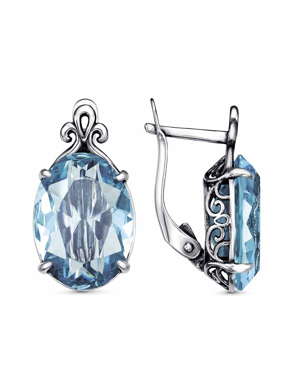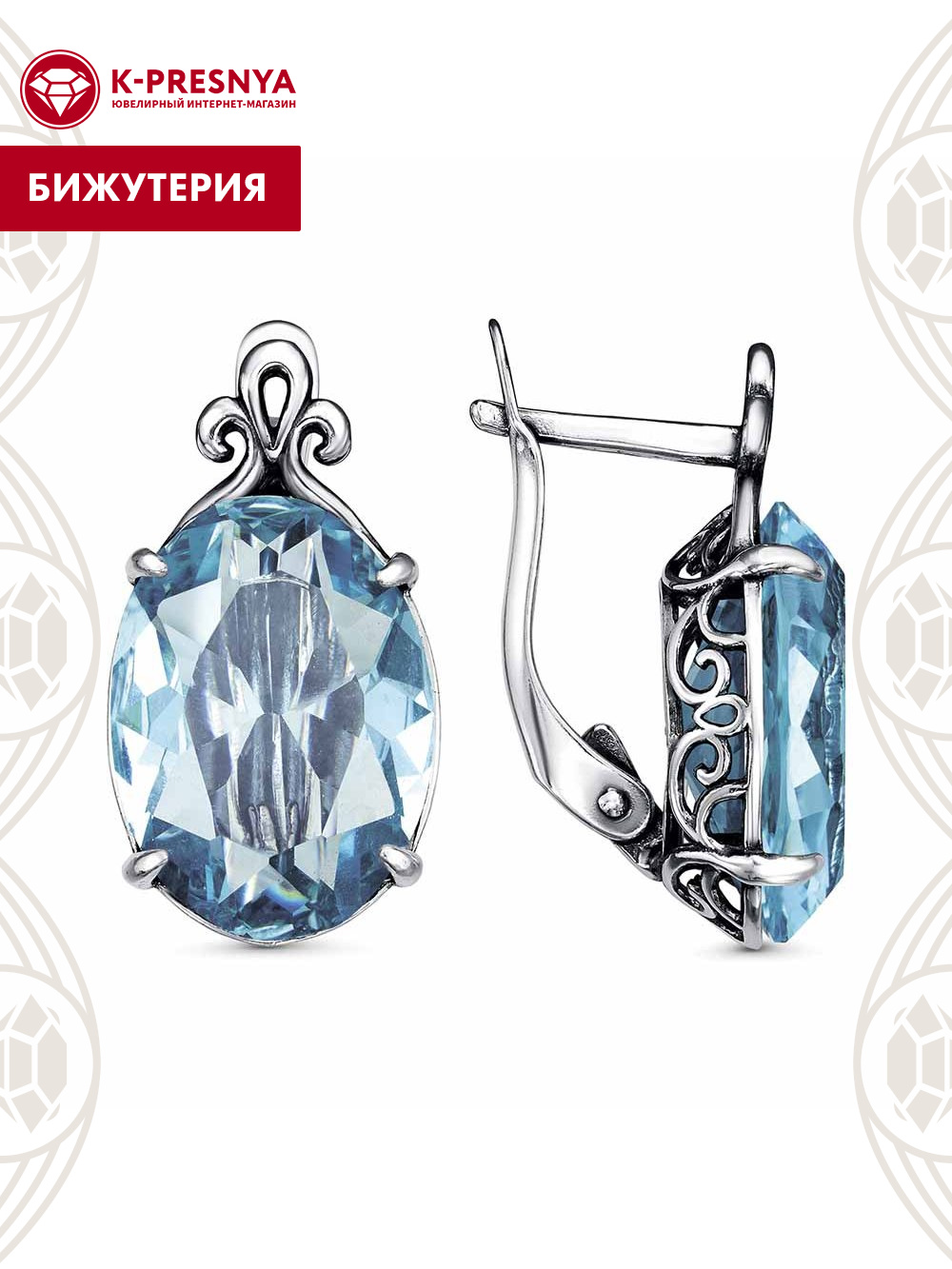 Серьги бижутерия, покрытие - серебрение с оксидированием, вставка - стекло ювелирное собственной огранки