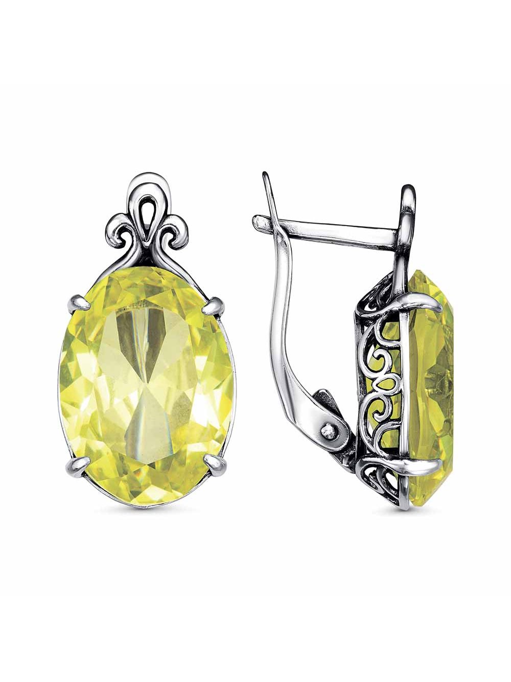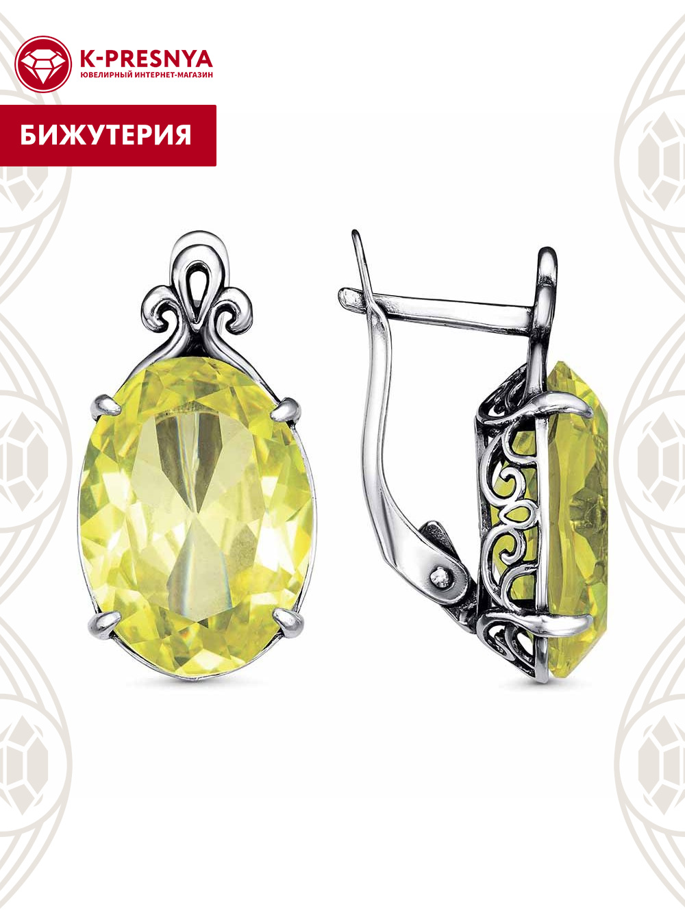 Серьги бижутерия, покрытие - серебрение с оксидированием, вставка - стекло ювелирное собственной огранки