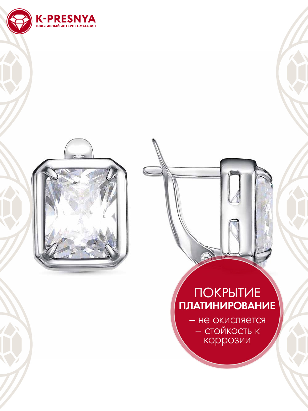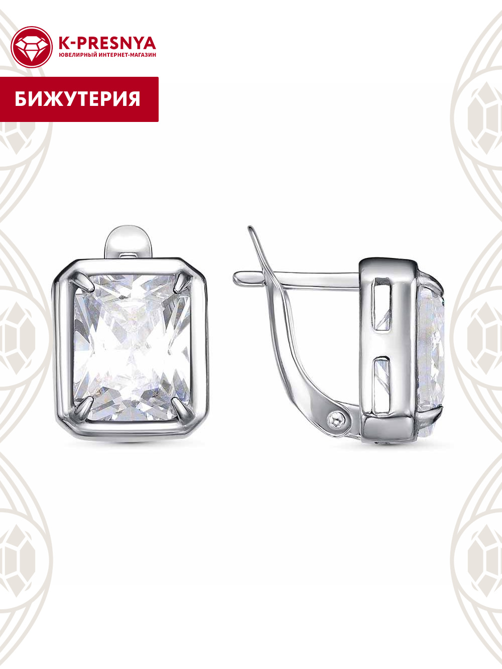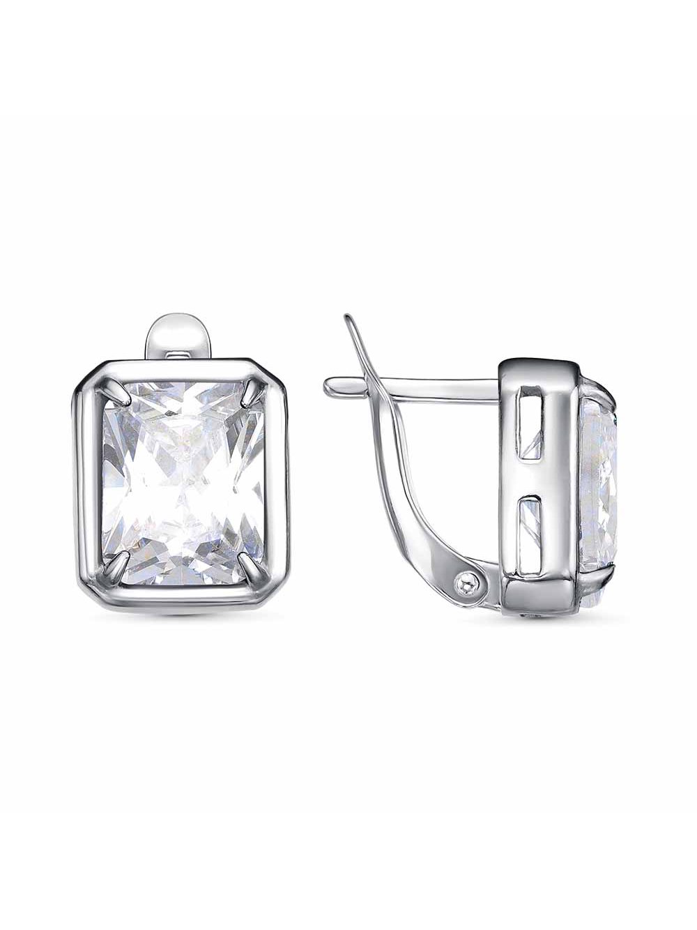 Серьги бижутерия, покрытие - платинирование, вставка - фианит (недрагоценный камень)