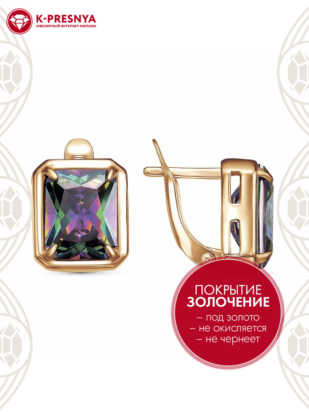 Серьги бижутерия, покрытие - золочение, вставка - фианит (недрагоценный камень)