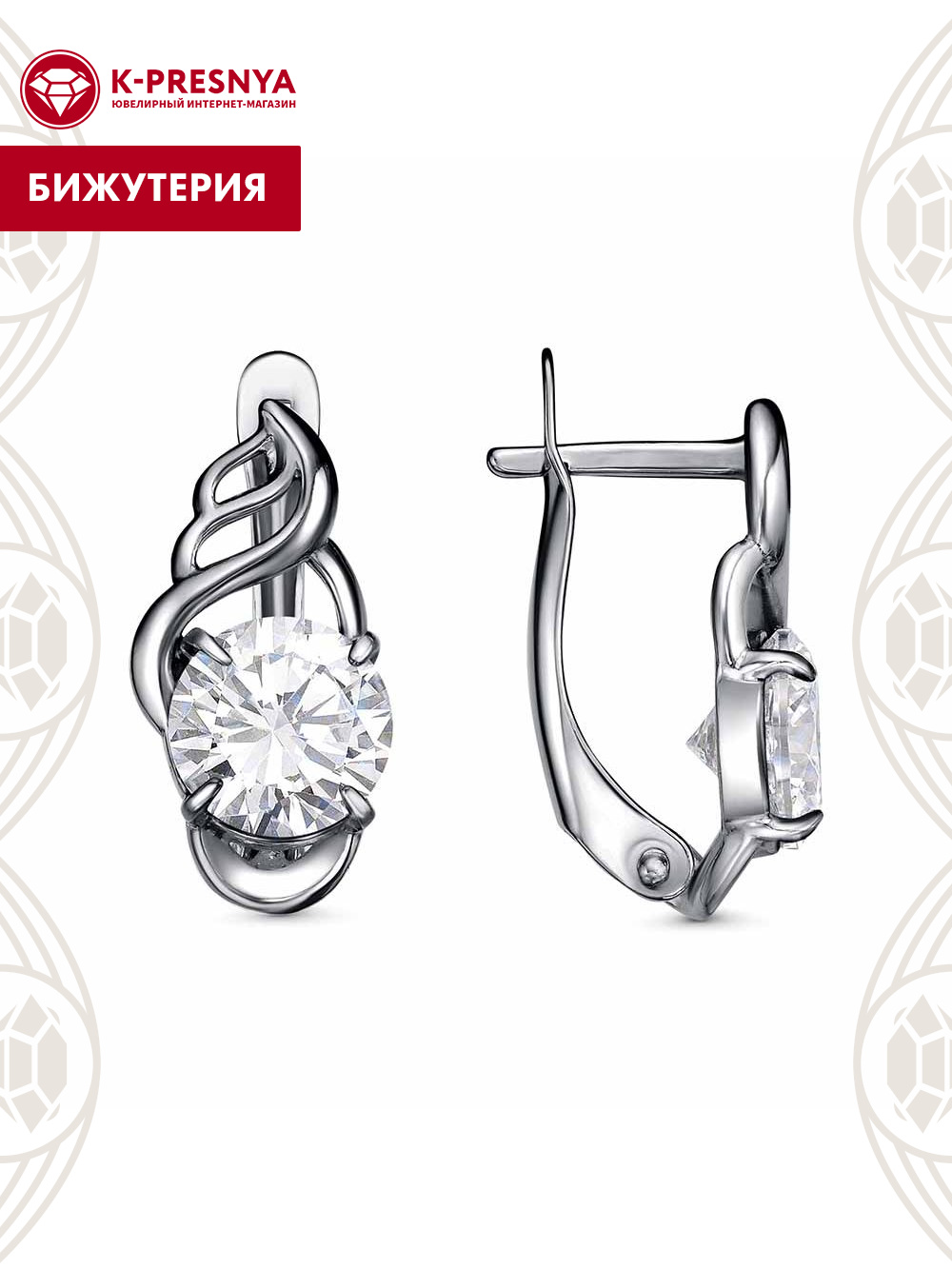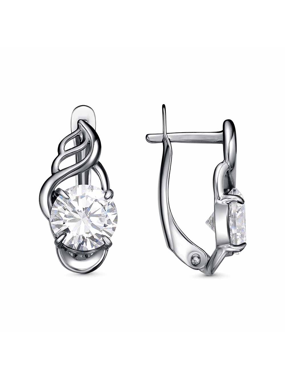 Серьги бижутерия, покрытие - серебрение с оксидированием, вставка - фианит (недрагоценный камень)