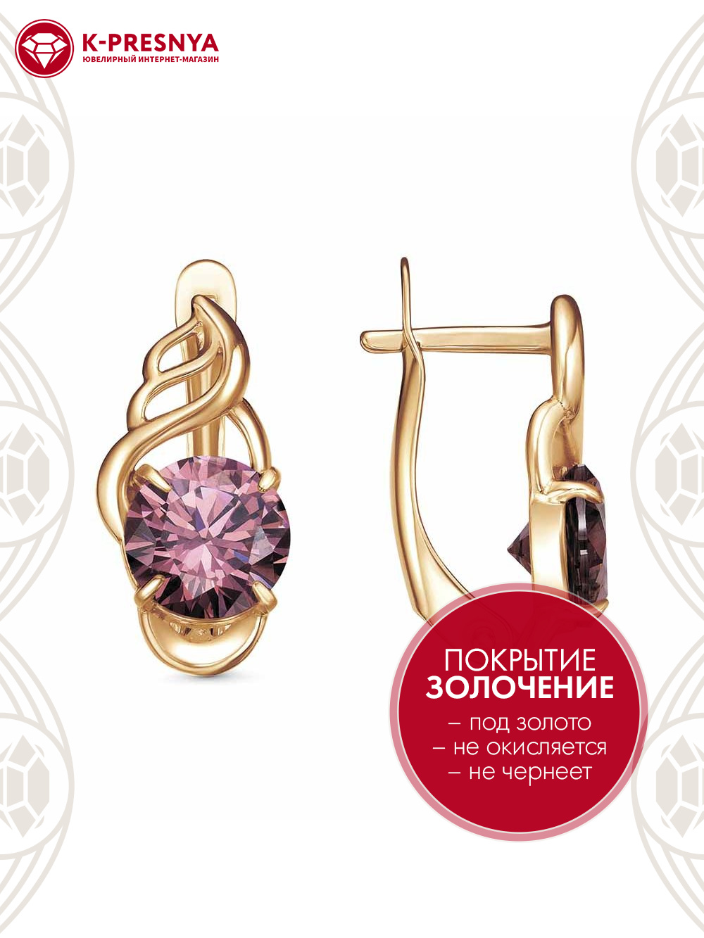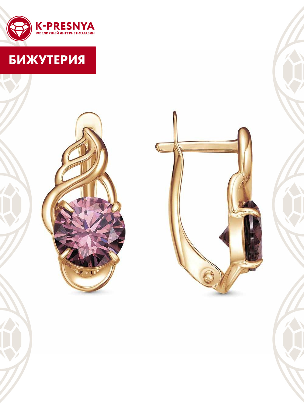 Серьги бижутерия, покрытие - золочение, вставка - фианит (недрагоценный камень)
