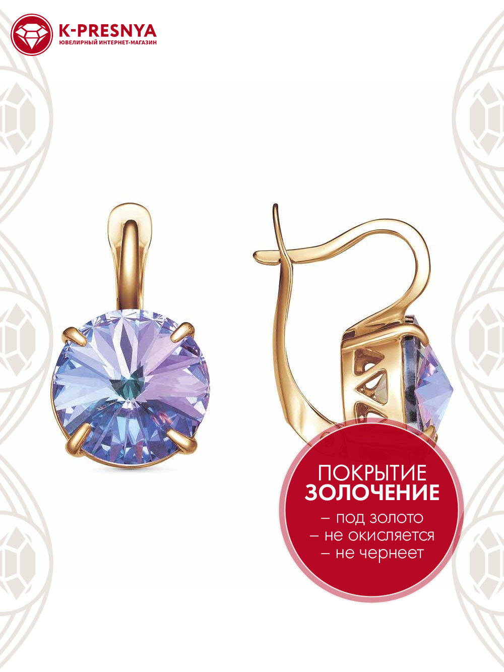 Серьги бижутерия, покрытие - золочение, вставка - стекло ювелирное preciosa