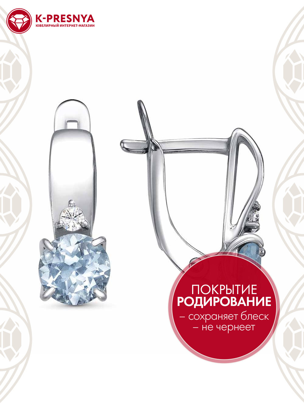 Серьги серебро 925 пробы, покрытие - родирование