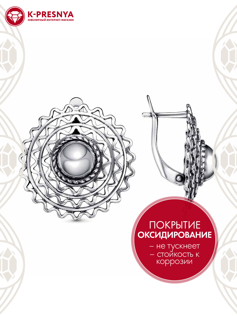 Серьги серебро 925 пробы, покрытие - оксидирование, без вставок